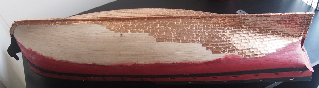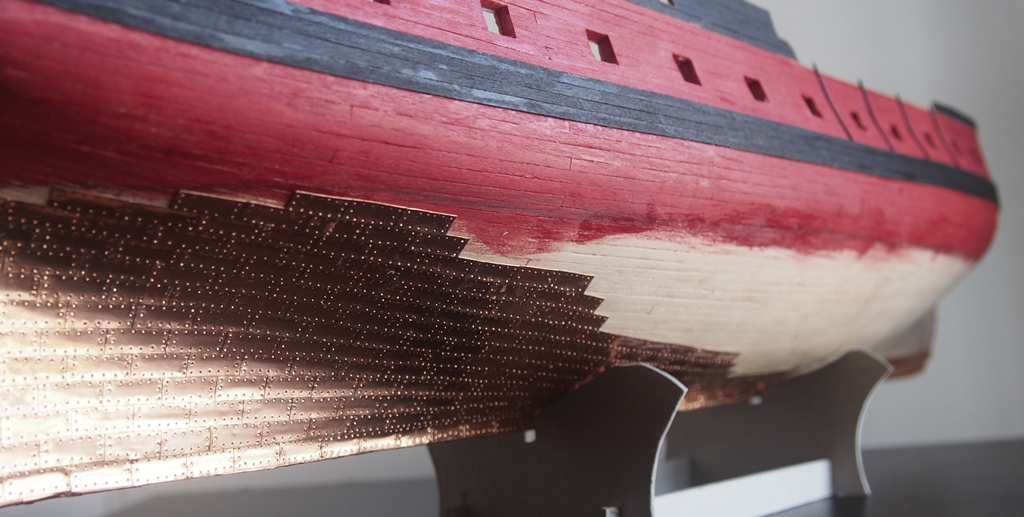 Sam jestem świeżo po kładzeniu płytek miedziowych w moim modelu, stąd pytanie. Nie boisz się, że zaczną Ci się te płytki rozklejać? Jak rozumiem nie ściągałeś papierka ochronnego przed przyklejeniem do kadłuba. Te papierki pokryte są taką ślizgawą warstwą i może to spowodować rozwarstwianie z czasem. Chyba, że planujesz jeszcze lakierowanie powierzchni.