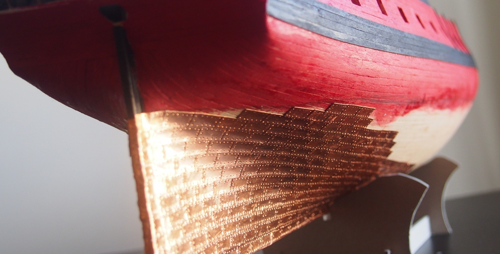 Sam jestem świeżo po kładzeniu płytek miedziowych w moim modelu, stąd pytanie. Nie boisz się, że zaczną Ci się te płytki rozklejać? Jak rozumiem nie ściągałeś papierka ochronnego przed przyklejeniem do kadłuba. Te papierki pokryte są taką ślizgawą warstwą i może to spowodować rozwarstwianie z czasem. Chyba, że planujesz jeszcze lakierowanie powierzchni.