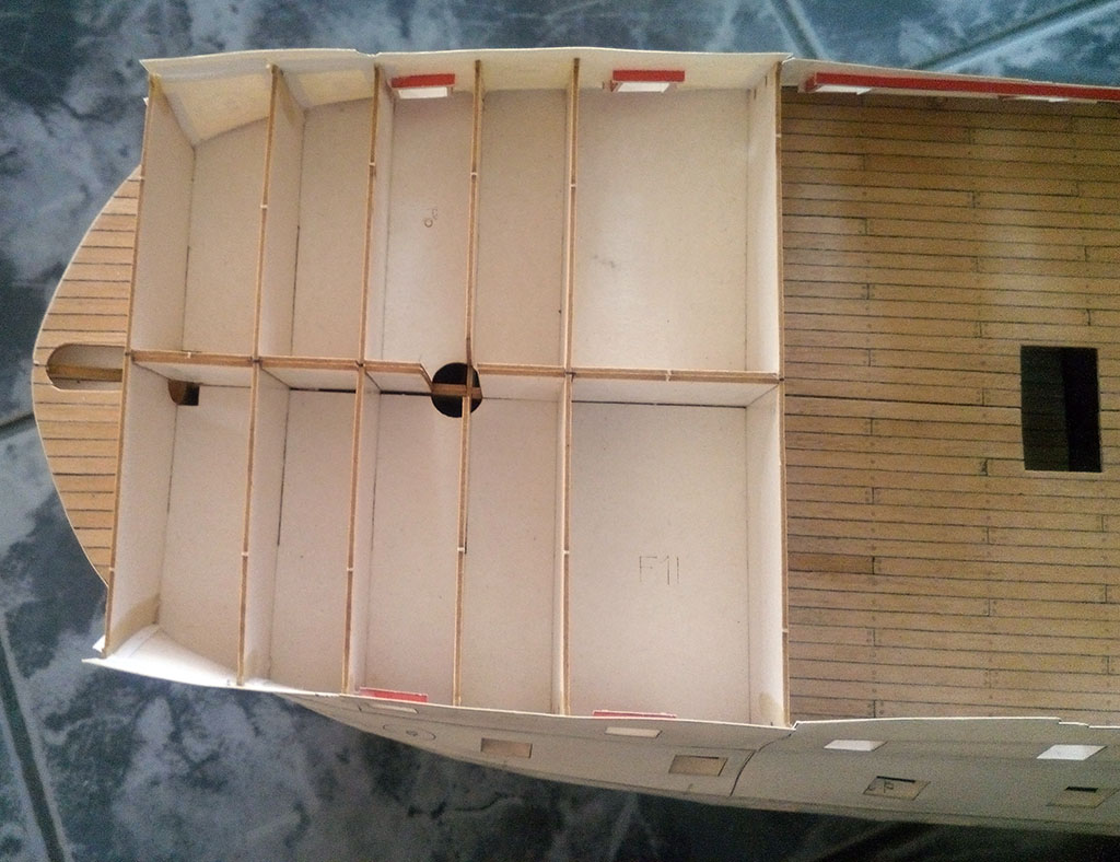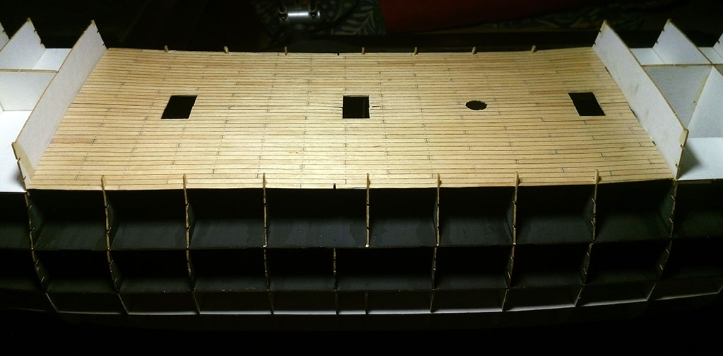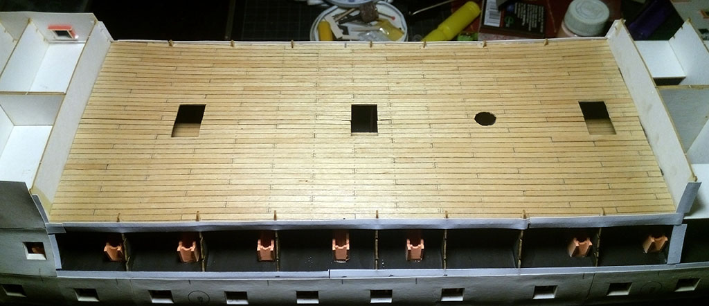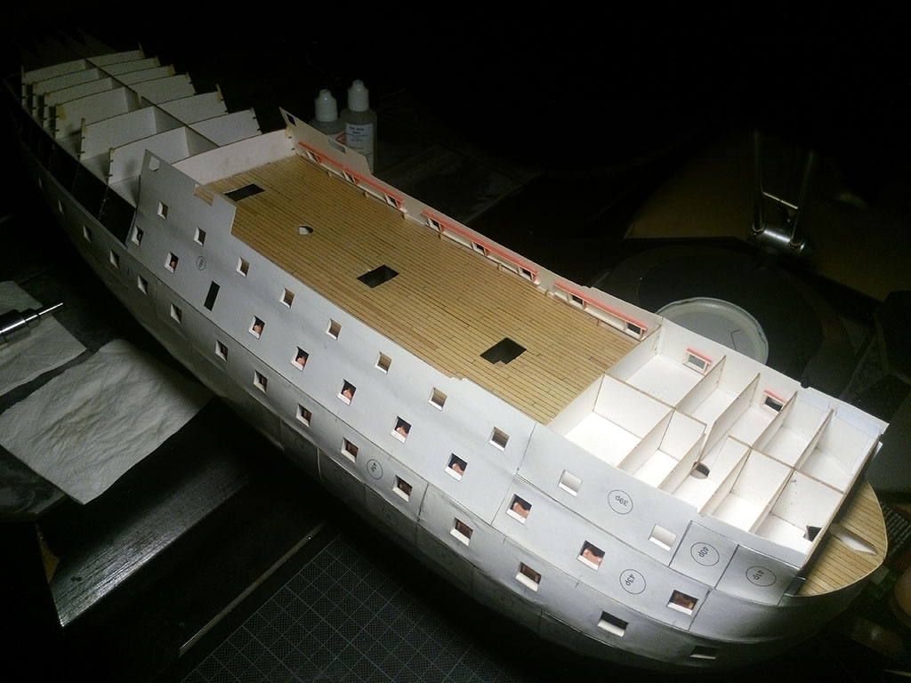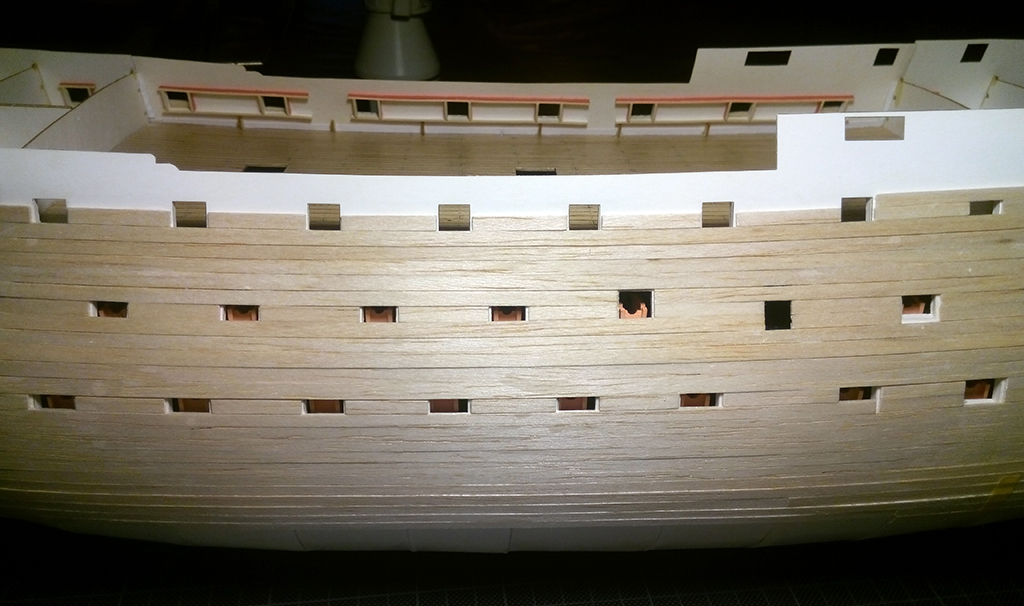 Dzięki wszystkim za wyjaśnienia i rzeczywiście jak pisze Tomek na Victorym kołkowanie jest praktycznie niewidoczne na większości pokładów (na niektórych fragmentach widać, ale to jest pewnie niechlujstwo cieśli robiących naprawy). Zrobię jednak kołkowanie pokładu, a jeśli chodzi o układ planek to wykonuję układ 3-stopniowy i planki mam 3x80mm co dobrze dzieli się na 4 części.