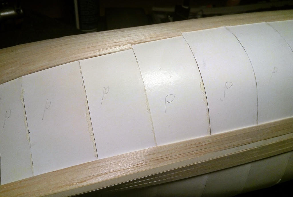 I powoli oklejam burty. Listewki kleję punktowo na wręgach.