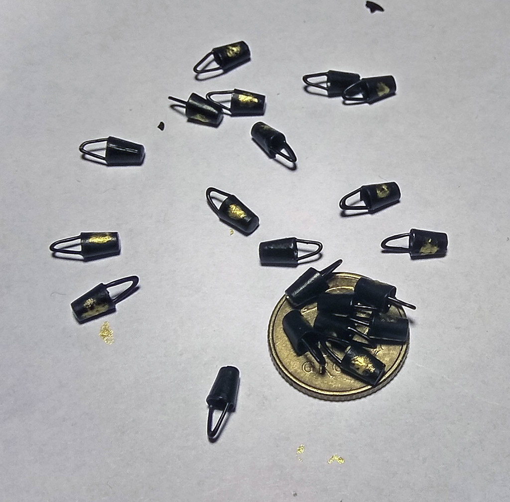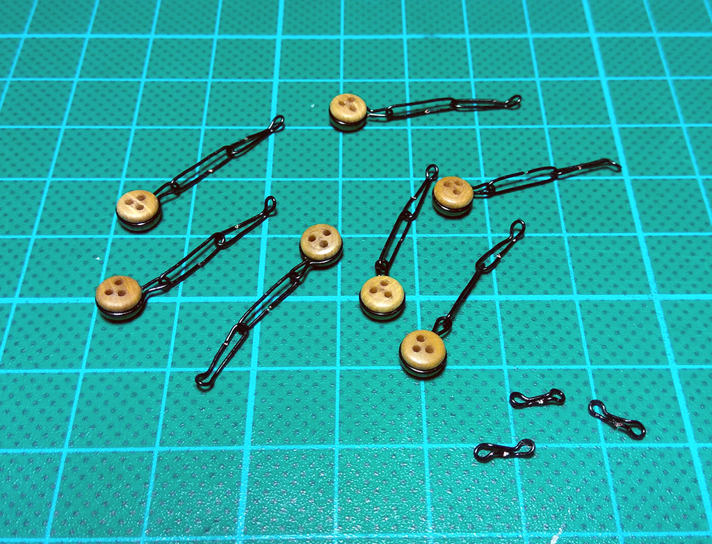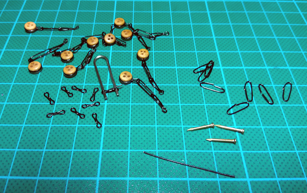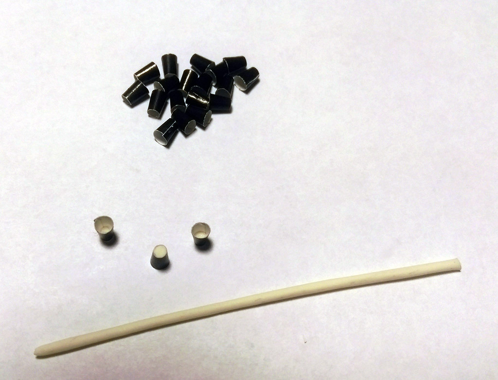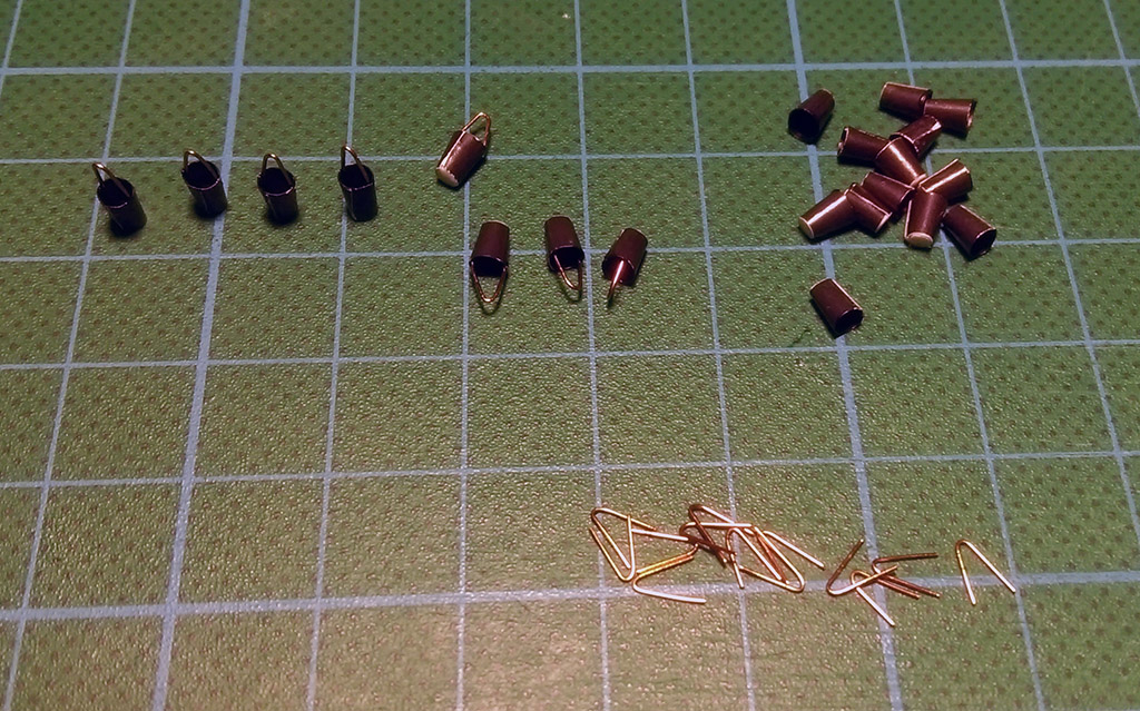 Czas na jufersy, zakupiłem je w modelarstwoszkutnicze.com w dwóch rozmiarach: 5mm i 3,5mm. Do okuć użyję drutu miedzianego czarnego 0,5mm dla plastyków. Na początek owijam jufersy drutem