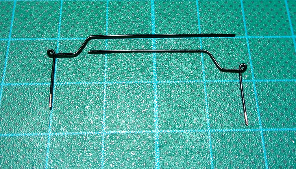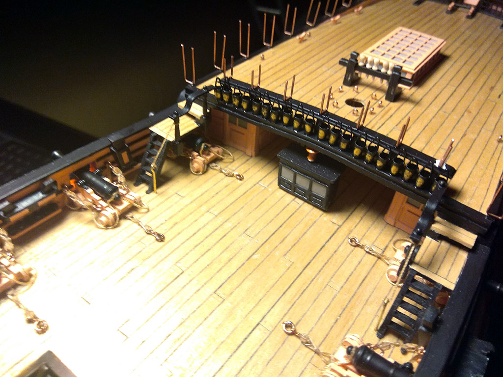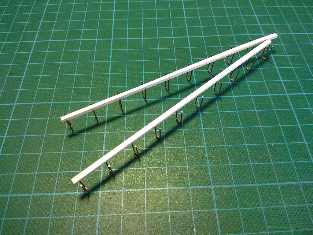Kolej na ostatni element wyposażenia pokładów: metalowa barierka schodów. Wykonałem ją również z drutu miedzianego 0,5mm barwionego na czarno