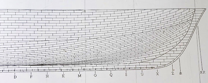 Przyjęta przez Ciebie koncepcja zakłada ułożenie trzech pasów, z czego najwyżej położony składa się z dwóch rzędów płyt (w opisie Longridge'a te płyty równolegle umieszczone do linii wodnej nie występują). Dodatkowo przy układaniu miedzianych płyt, układ u Ciebie będzie odwrotny niż wg opisu przedstawionego przez Longridge'a tzn., dolna krawędź płyty położonej wyżej będzie zachodziła na górną krawędź płyty położonej niżej. Oznacza to, że układanie rozpoczynasz od kilu do linii wodnej.