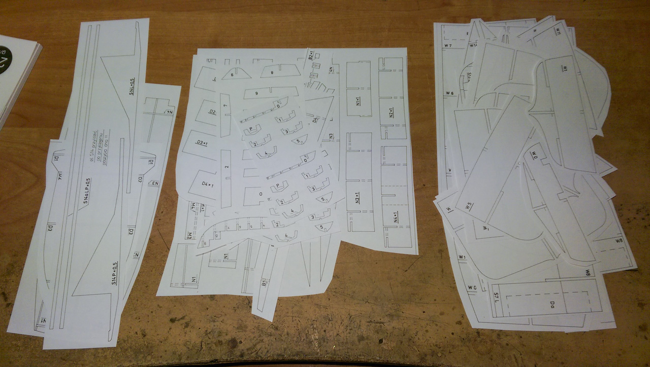 Końcówki zwężających się elementów naklejonych na tekturę zazwyczaj zamieniają się w "pędzel" podczas wycinania. Radziłem sobie z tym wycinając najpierw z grubsza z niewielkim zapasem (samą końcówkę) i następnie mocząc ją w kleju CA. Po wyschnięciu trzeba było co prawda obrobić ją papierem ściernym, ale trzymała kształt i nie rozwarstwiała się.