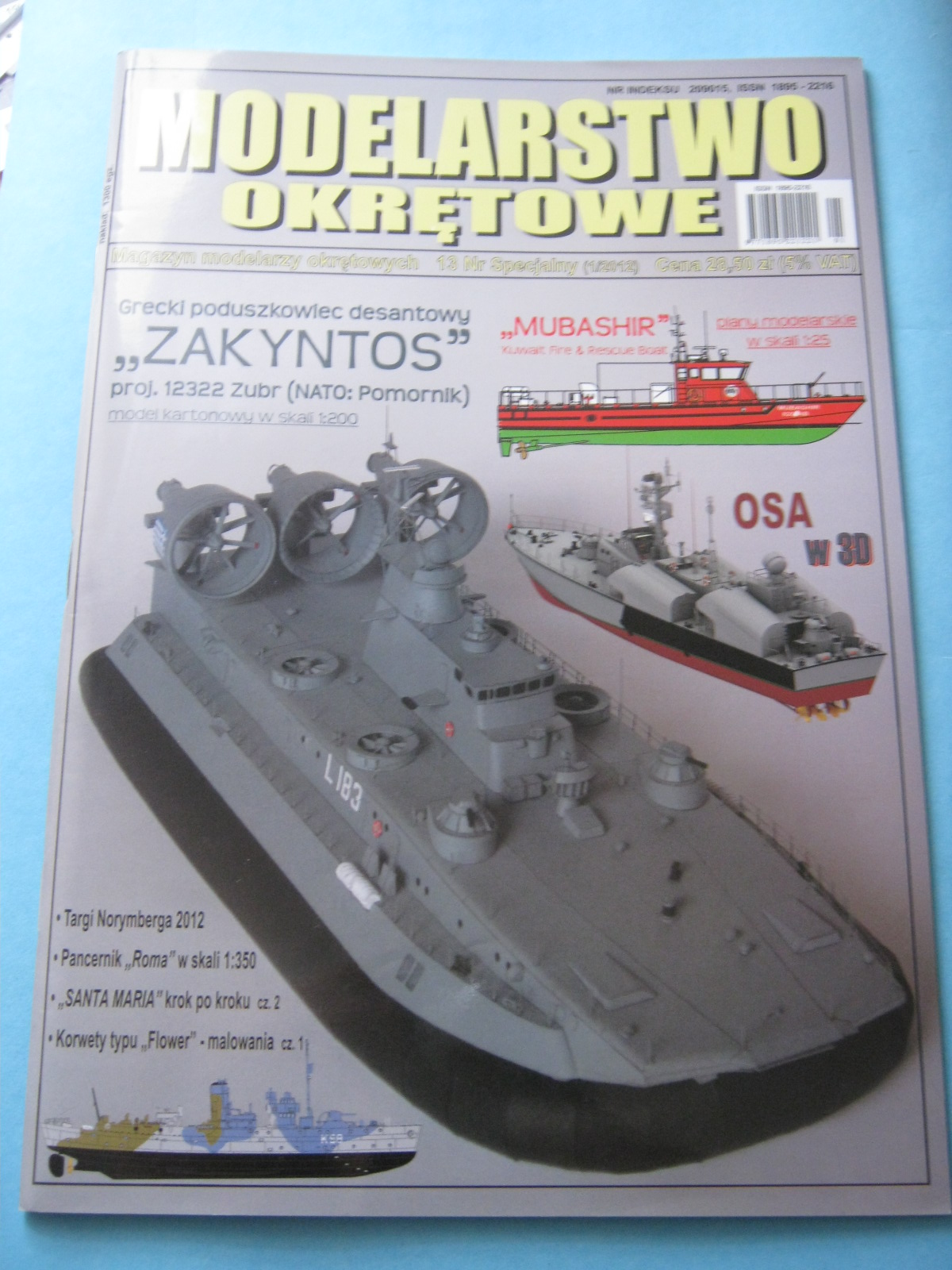 Modelem będzie poduszkowiec ZAKYNTHOS w skali 1:200 w barwach Grecji. Model był dołączony do czasopisma Modelarstwo Okrętowe gdzie ma tam nazwę ZAKYNTOS (bez H)(nie wiem czemu).