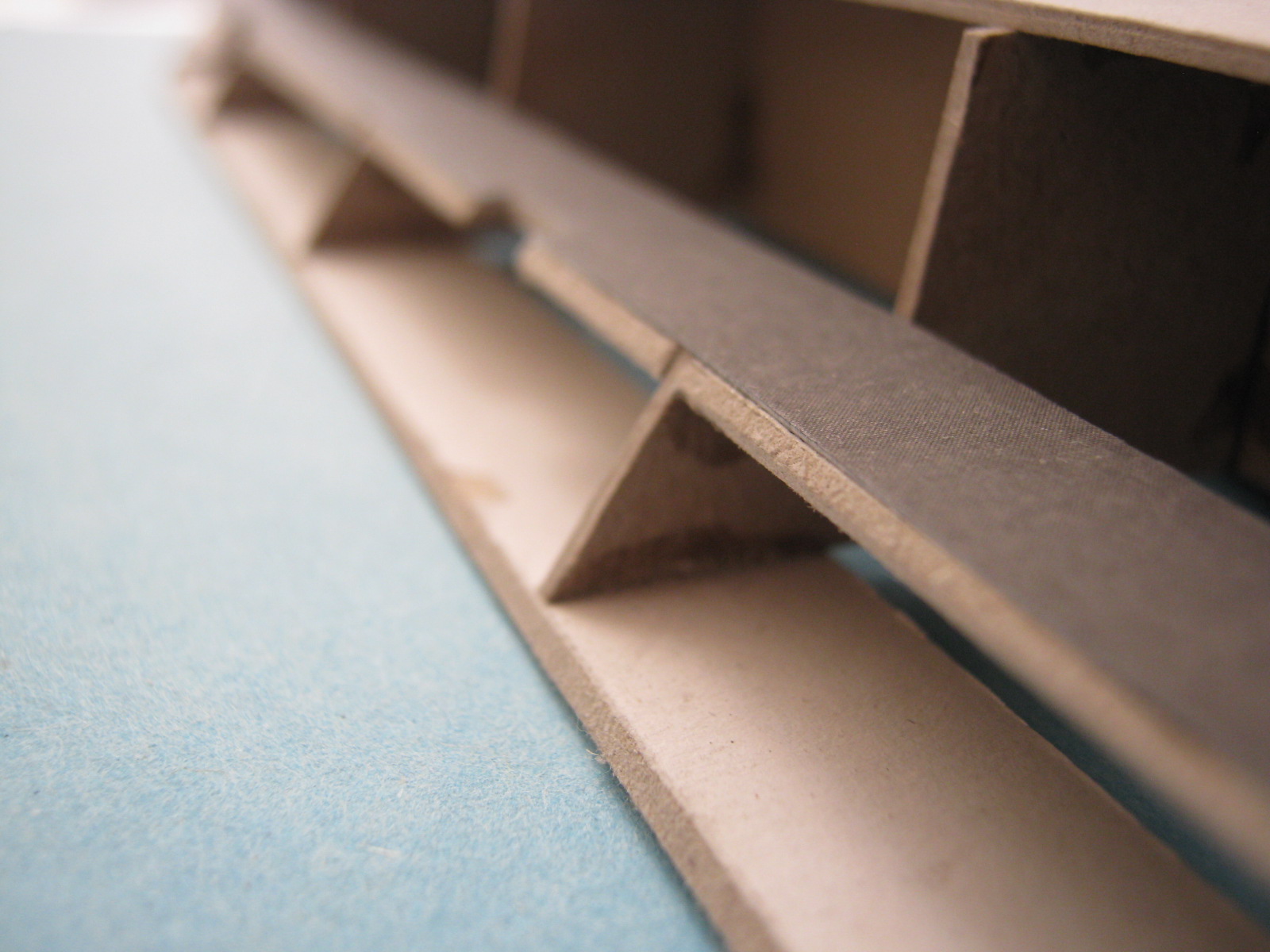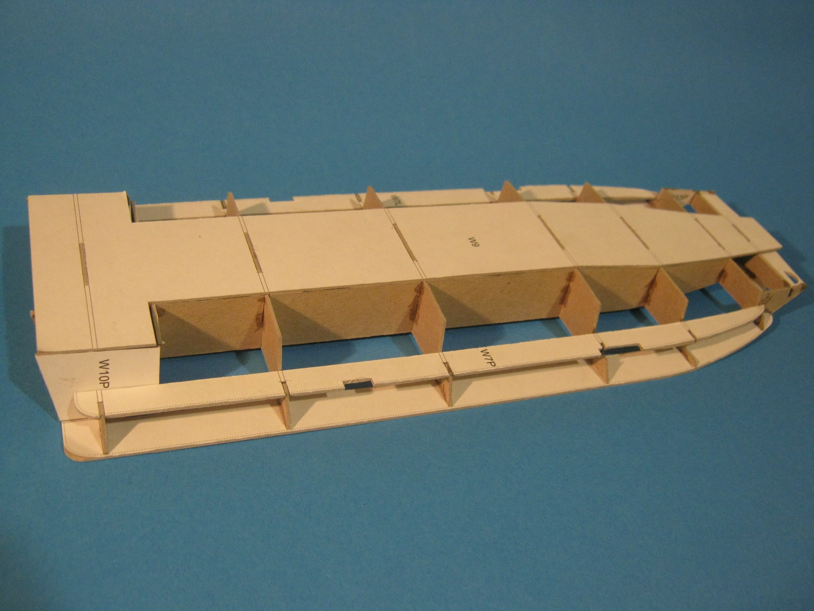 Kolejnym problemem są "wiszące w powietrzu" oklejki. Nie wiem czemu tak to zaprojektowano że od razu trzeba doklejać sklejki pomocnicze. Jak dla mnie mogły być od razu wydrukowane i być całością z oklejką ściany. A najlepszym wyjściem moim zdaniem byłoby takie zaprojektowanie szkieletu żeby miał formę "skrzyniową" i oklejki zewnętrzne naklejałoby się na płaskie powierzchnie kartonu.