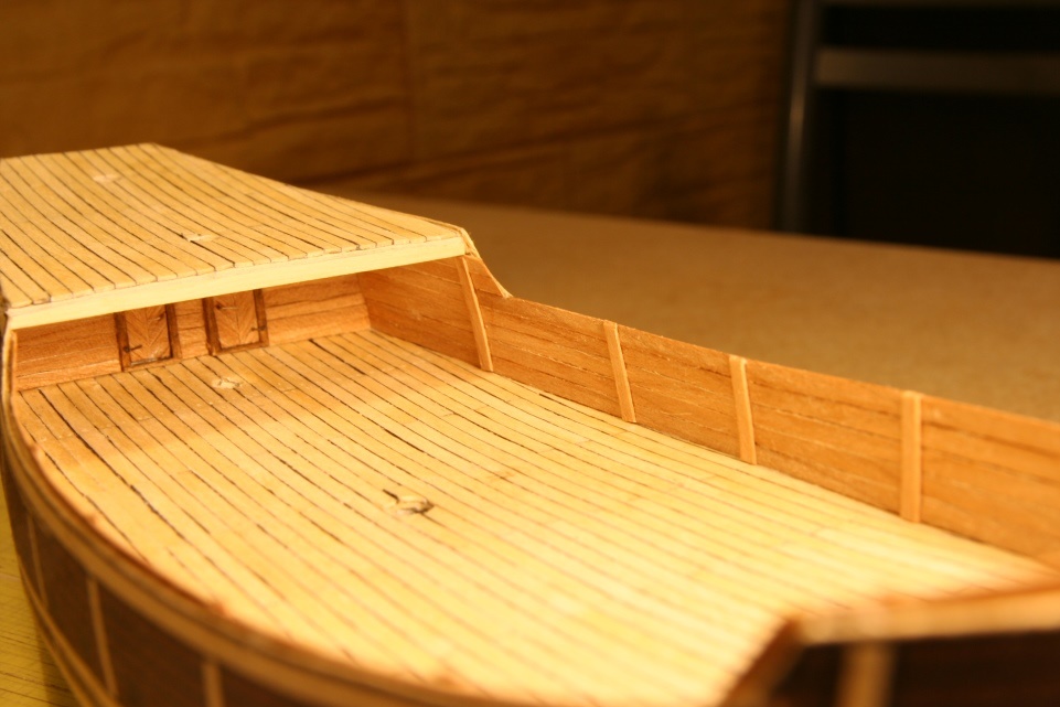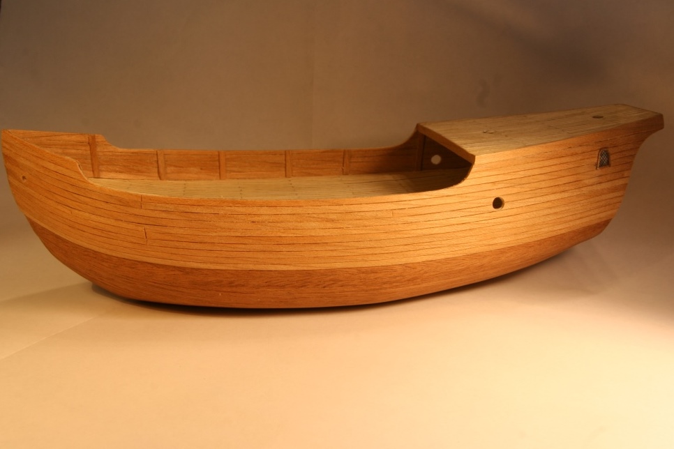 Poszycie dna chciałem aby było w naturalnym ciemniejszym kolorze. Zdecydowałem się na fornir mahoniowy. Kleiło się całkiem dobrze, planki ok 2,8 mm. A wyszło to tak: