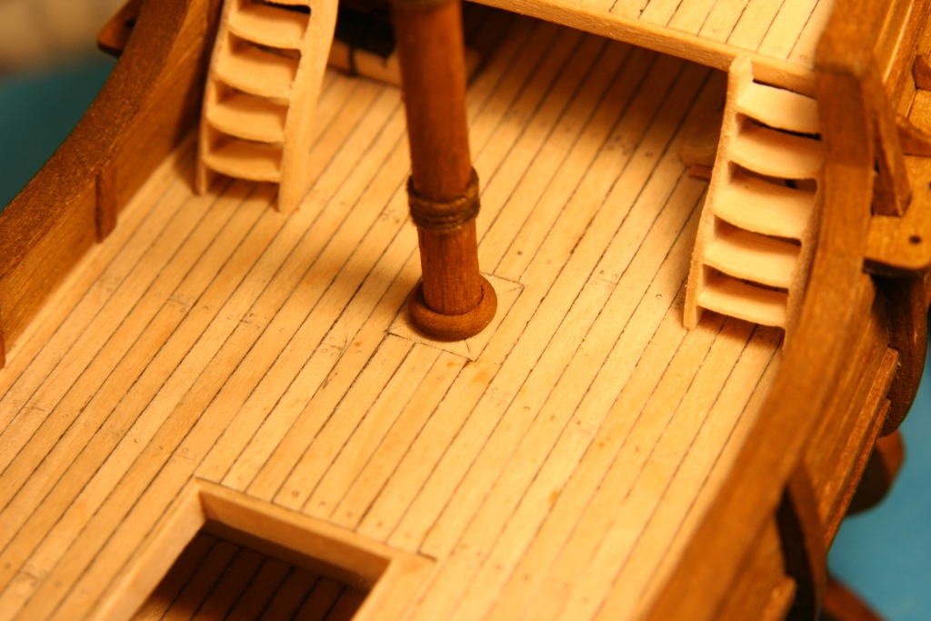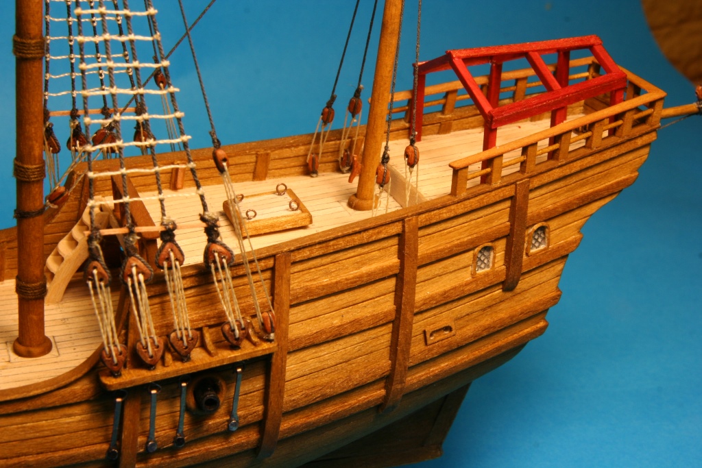 Trochę drobnych detali jak obręcze wokół masztów, otworów pod liny kotwiczne, bloki na topach masztów, knagi na burtach i takie czarne ustrojstwo, które nie mam pojęcia do czego służyło.