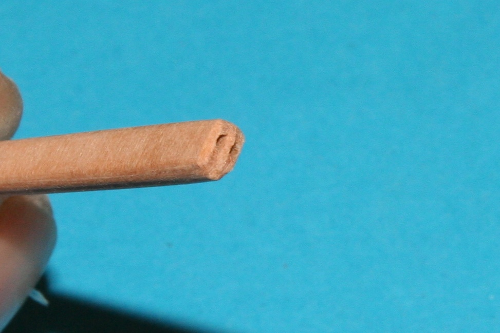 Przygotowane barierki wokół pokładów. Na razie poczekają na wklejenie, aż do momentu zamocowania masztów i olinowania, bo pewnie nie raz bym je wyłamał. Nie mam ścierarki, ale do wyszlifowania równych i tej samej grubości kołeczków sprawdza się patent, który już gdzieś widziałem na forum. Przeszlifowanie z patyka szaszłykowego na niespełna 1mm średnicy to dosłownie chwila.