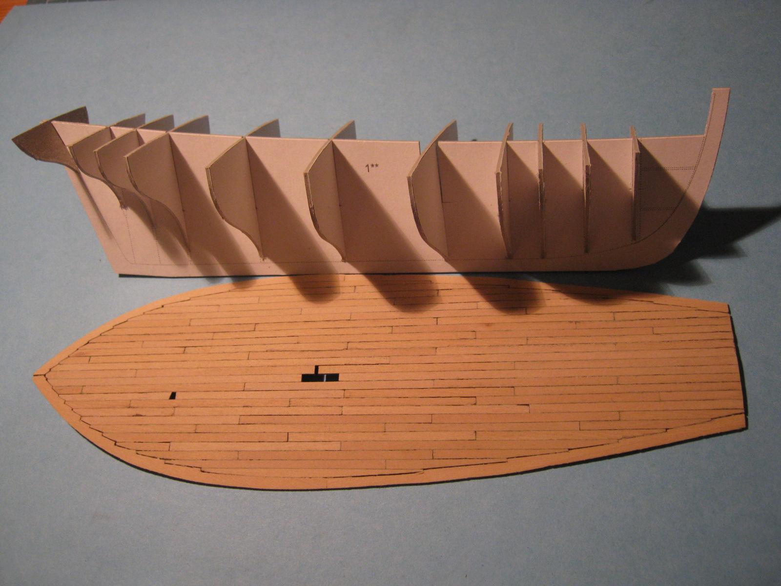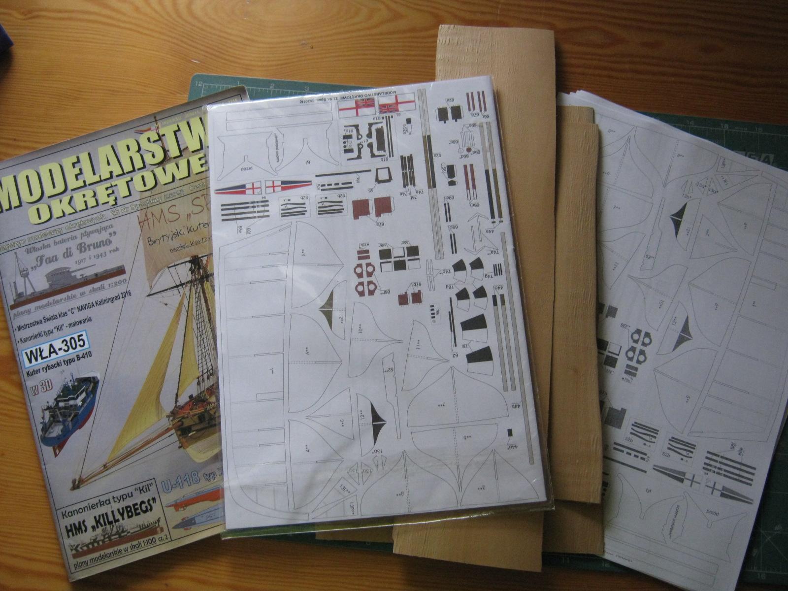 Kuter będę wykonywał metodą kartonowo-fornirową wg wycinanki. Większość elementów będzie raczej uproszczona co wynika z wycinanki jak i ze skali.