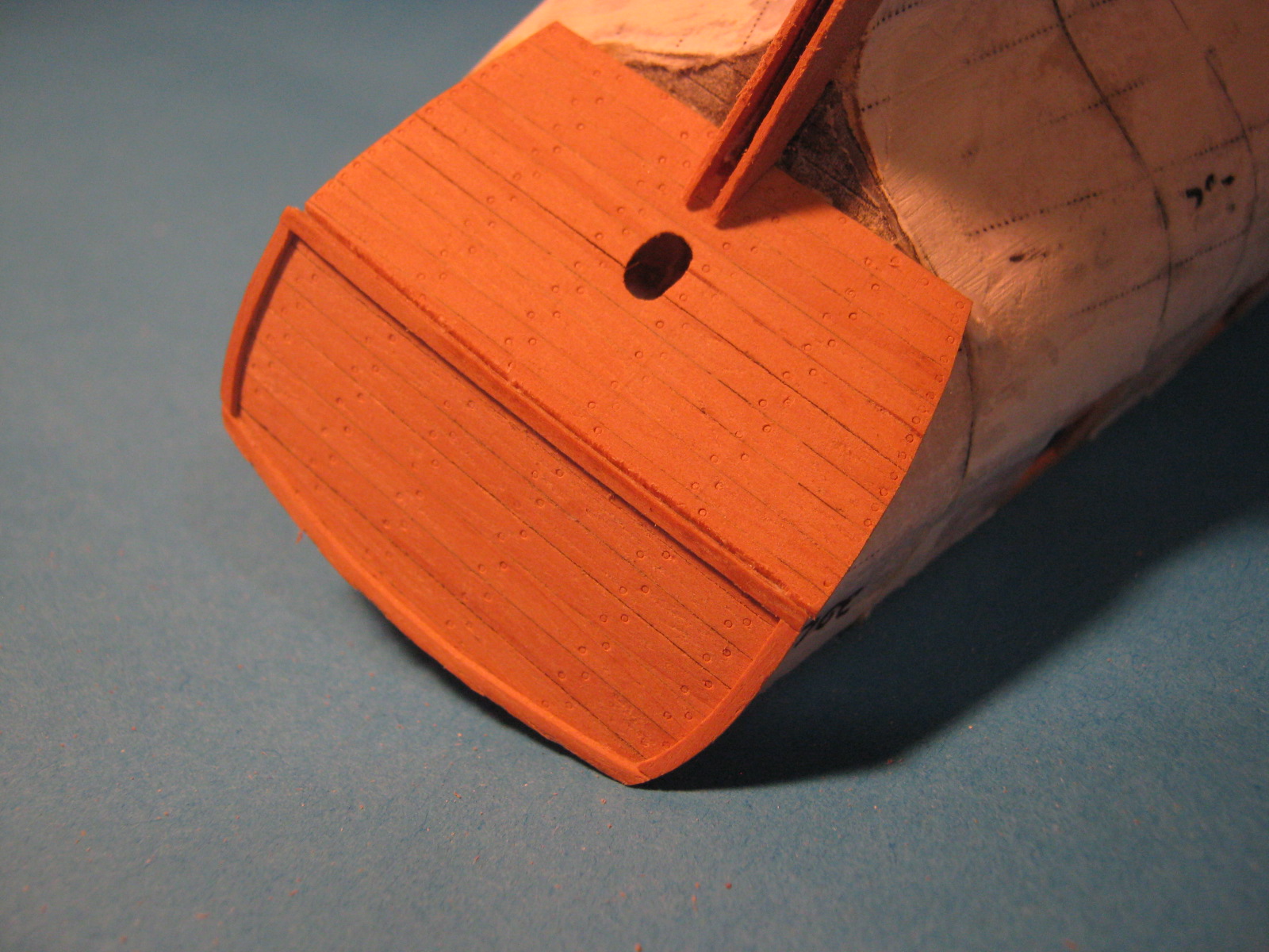 Zrobiłem też galerię rufową i stępkę z imitacją łączenia poszczególnych elementów.