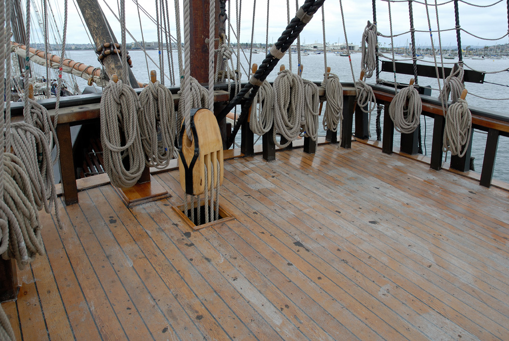 Liny zawsze były klarowane na naglach z przewiązem, tylko wyżej, gdzieś 1/3 odległości od nagla. Inne na knagach. Wolne końce układano w słoneczka. Jeżeli przedmówca twierdzi, że było inaczej, to niech przedstawi oryginalną fotkę nie z jakiegoś tam modelu.