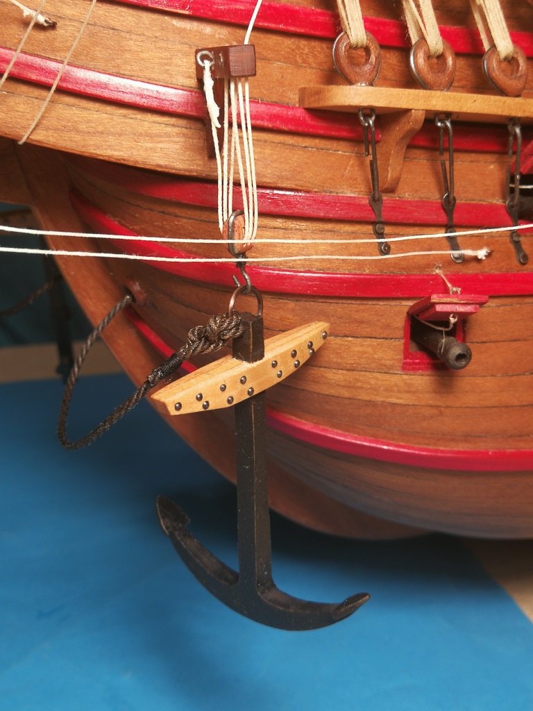 Skręciłem linę do kotwicy i poczerniłem wypróbowanym już wcześniej bitexem. Kotwice na swoim miejscu, chociaż pewnie powinienem podwiązać je do pozycji marszowej. Chociaż luźno zwieszone ładniej się prezentują.