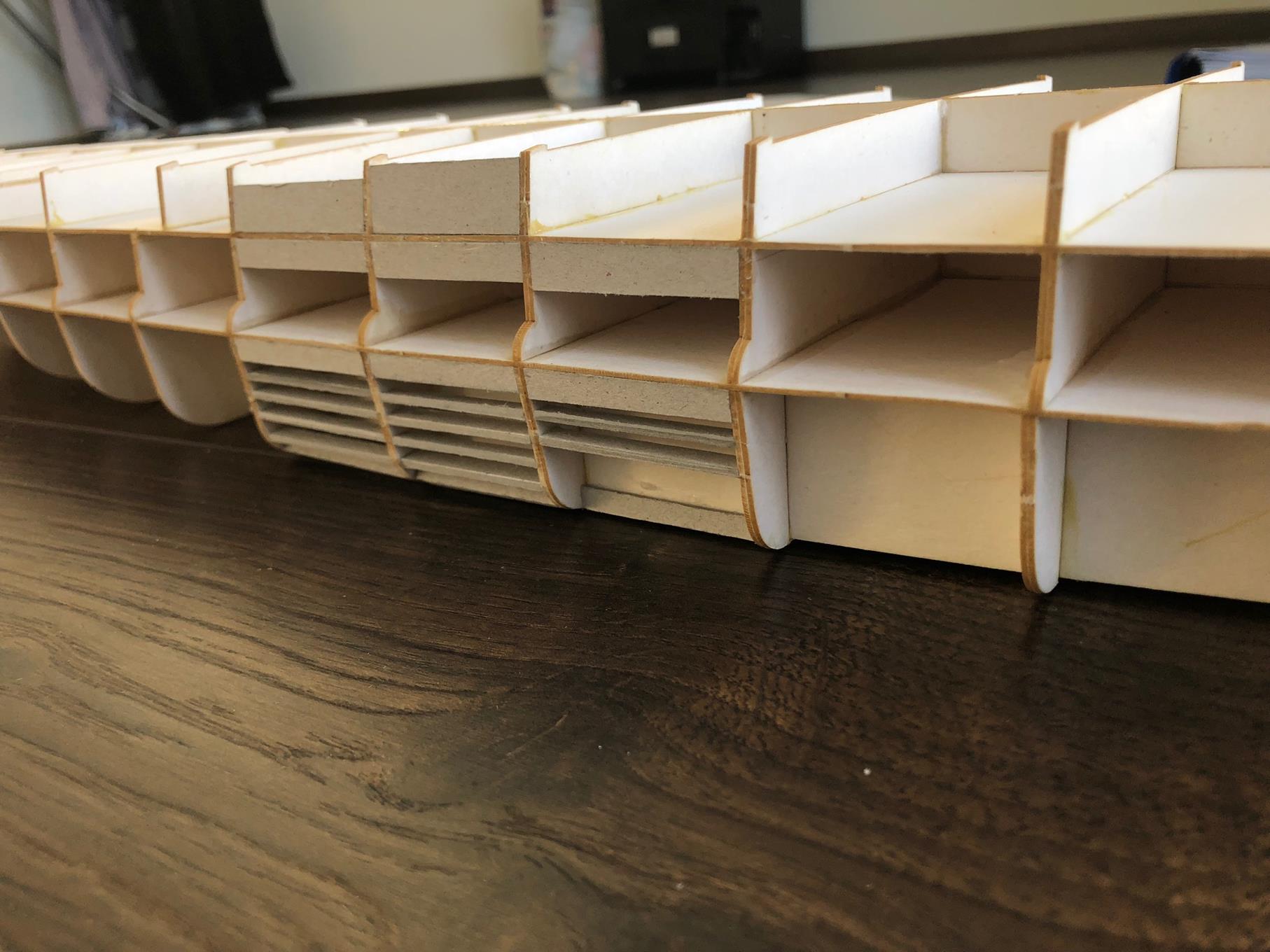 Piotrek. Spróbuj przed zaginaniem krawędzi wycinać delikatny rowek w kształcie litery "V" po wewnętrznej stronie oklejki i nasączać go niewielką ilością BCG. To spowoduje, że karton będzie cieńszy, bardziej elastyczny i nie będzie tak się łamać podczas zaginania. Dodatkowo klej BCG usztywni krawędzie od wewnątrz i wzmocni strukturę elementu. Jak mnie kusi, aby rozgrzebać jakiegoś japońca