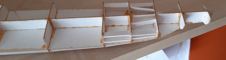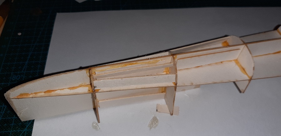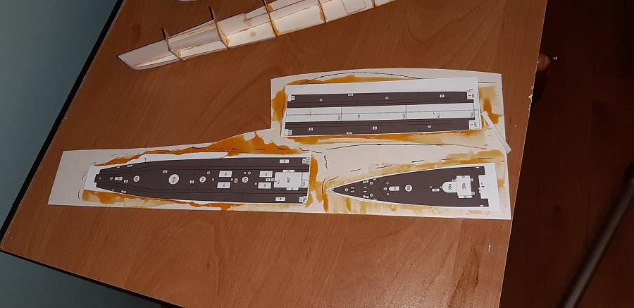 Ukończyłem pod poszycie i nakleiłem wszystkie pokłady. Wyciąłem i uformowałem część nr 6.