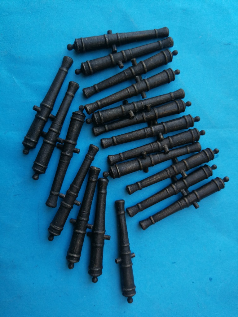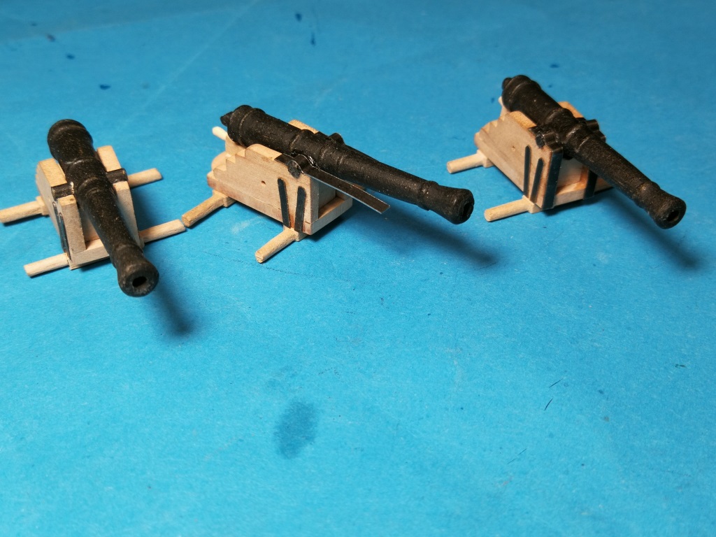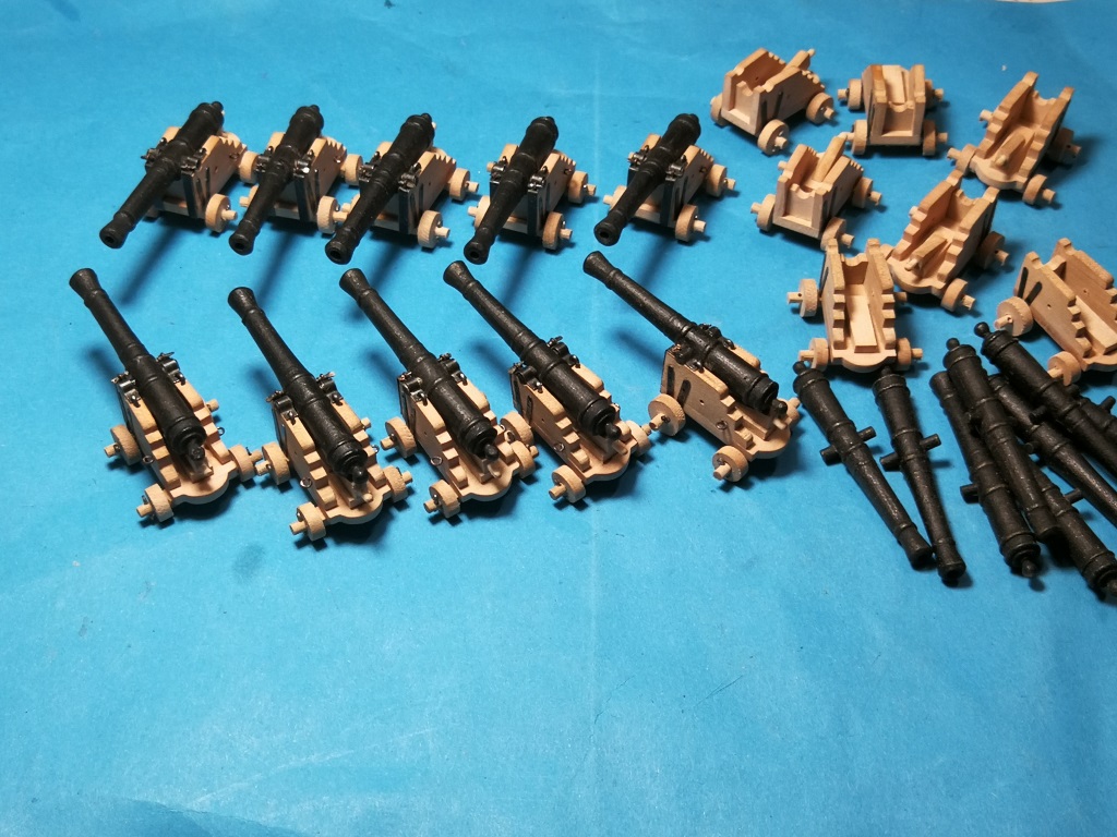 Armaty które będą na głównym pokładzie poskładane i teraz trochę poczekają na zamontowanie. Podobnie jak w Smoku zrobiłem je wcześniej, żeby łatwiej było ustalić wysokość otworów w burtach i dokonać ewent korekt.