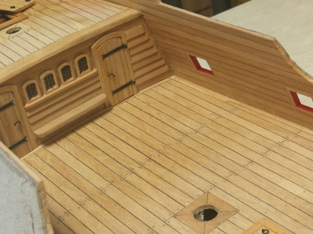 Armaty umieszczone pod pokładami i zamocowane na linach odrzutowych. Burty od wewnątrz wydeskowane. Gretingi na razie przymierzone "na sucho" jeszcze powędrują do pudełka.