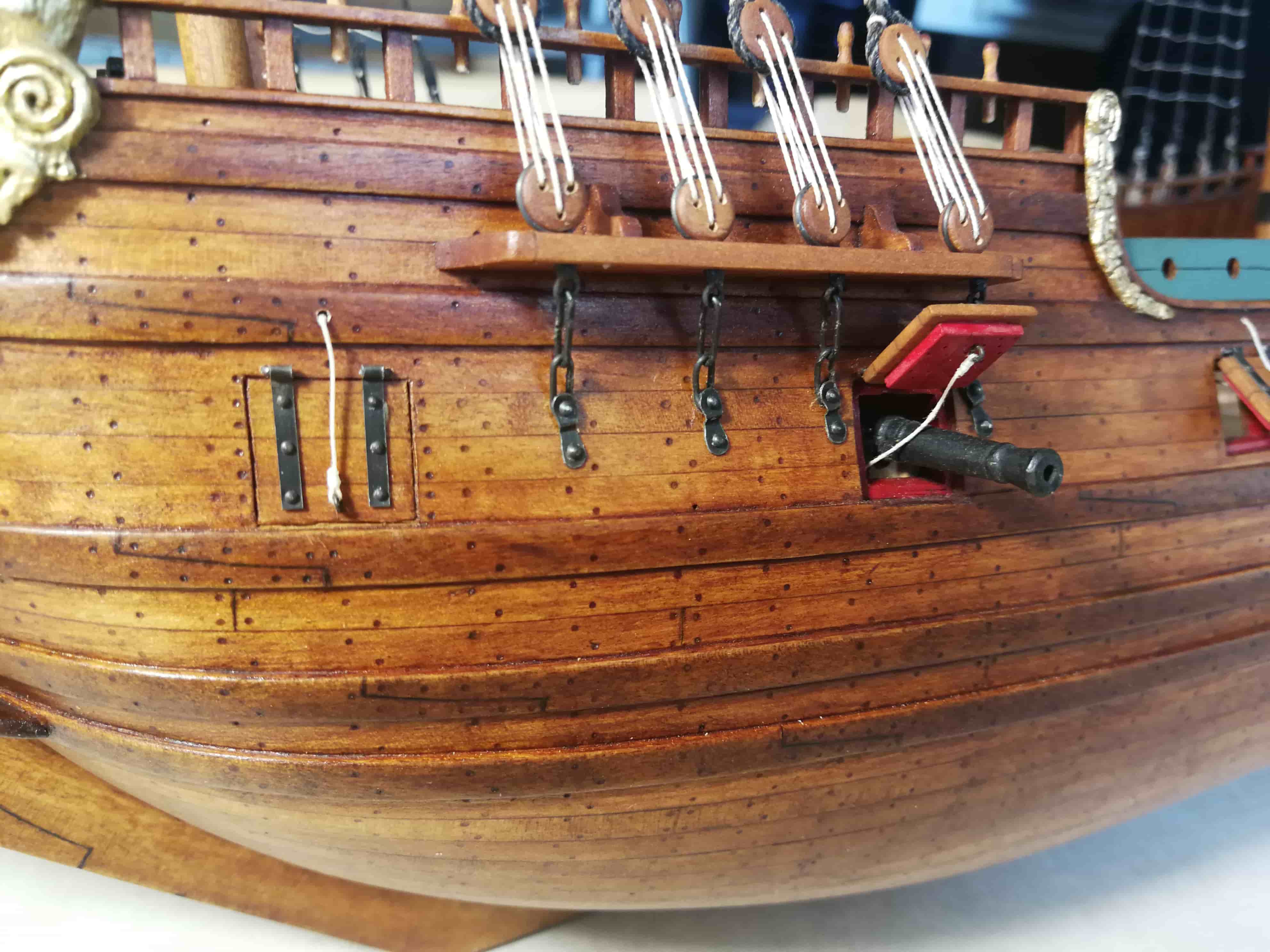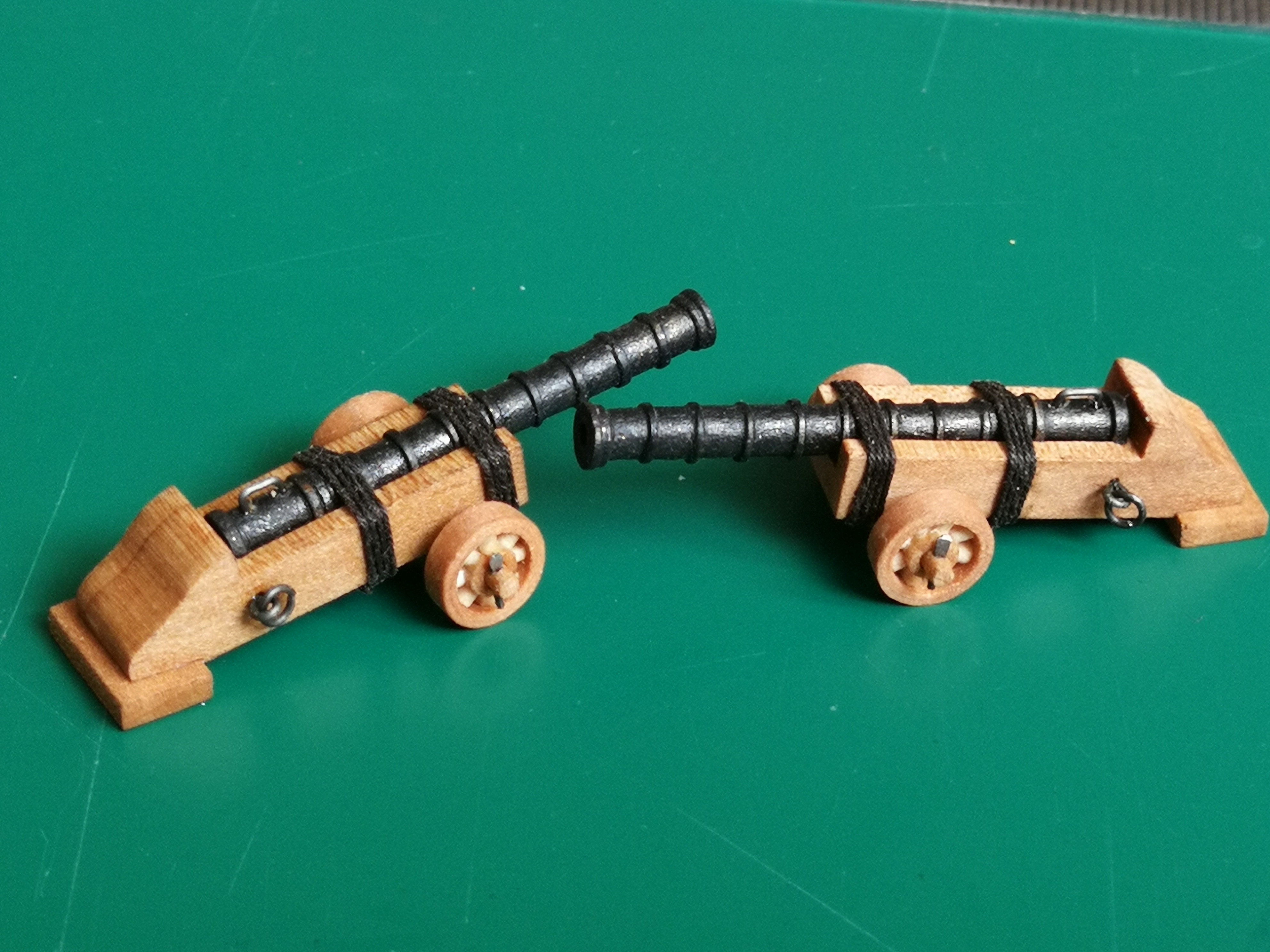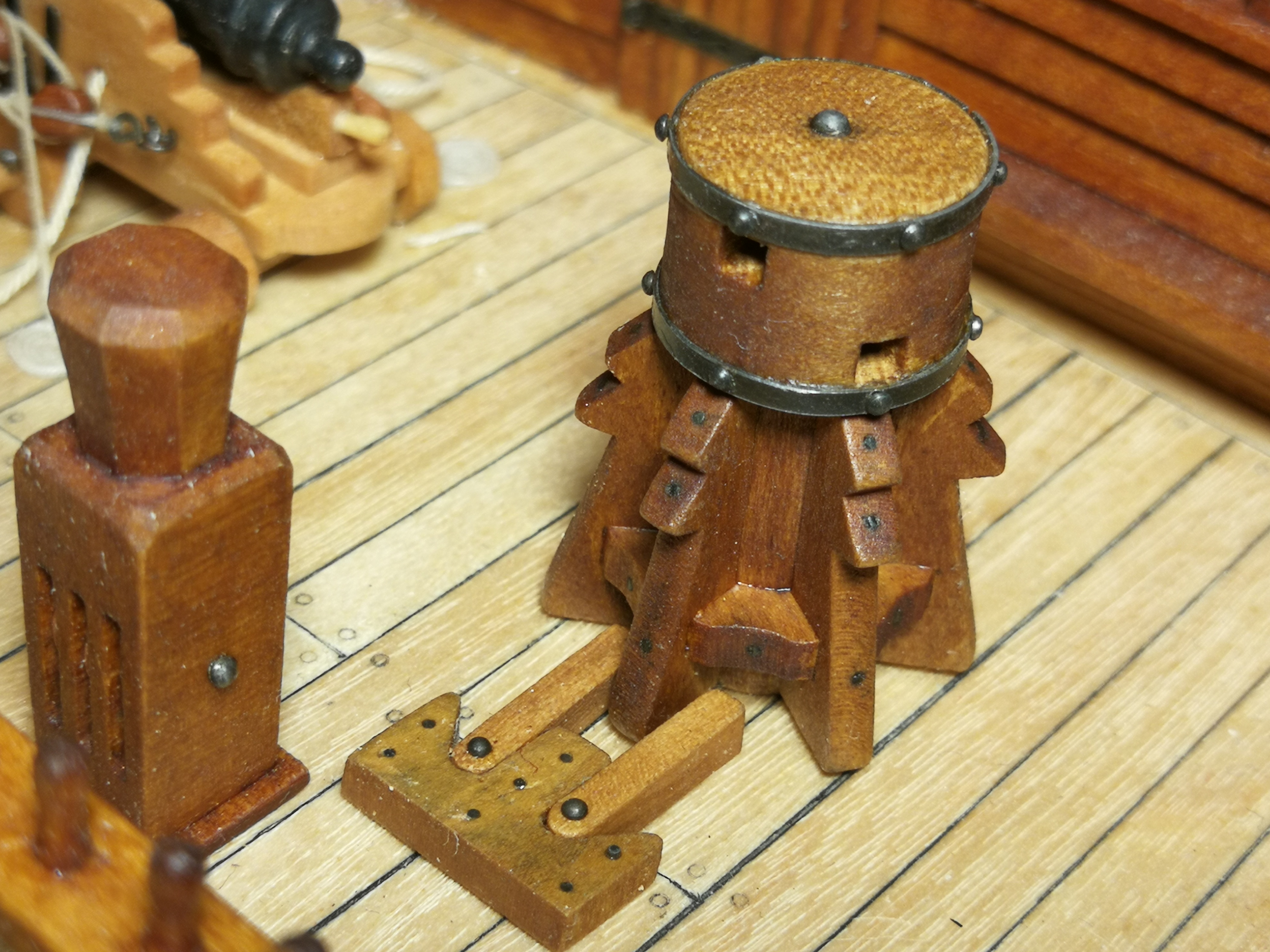 Uporałem się z zamontowaniem armat i powklejałem na pokład wcześniej wykonane elementy, kołkownice, pompy itp.