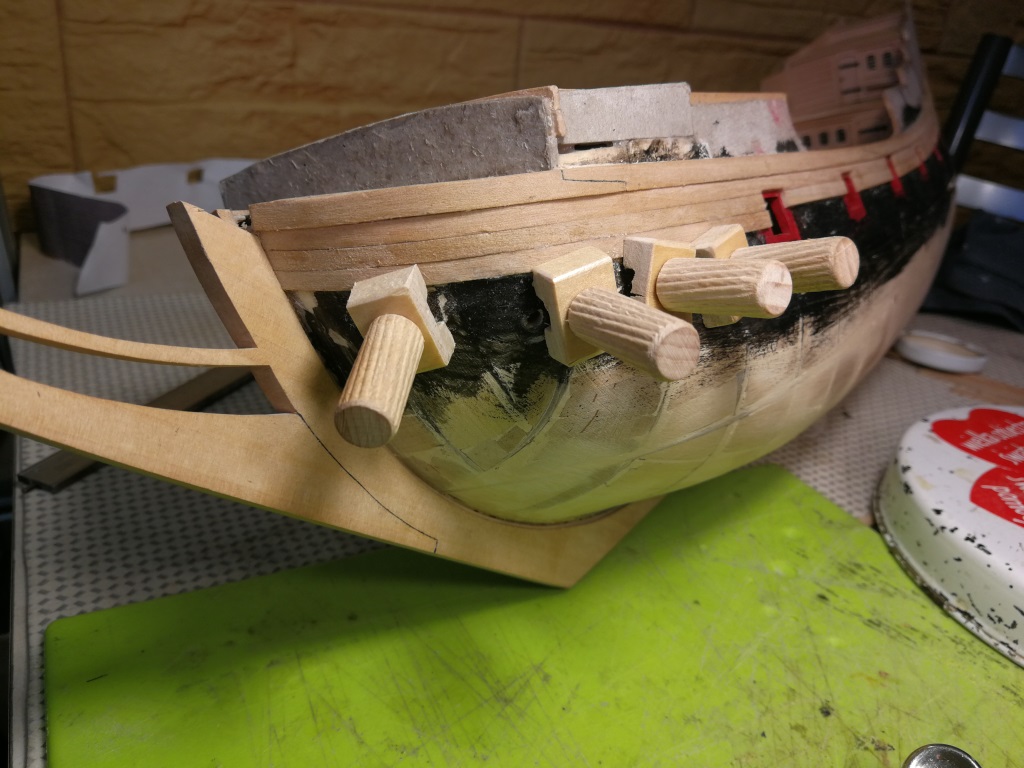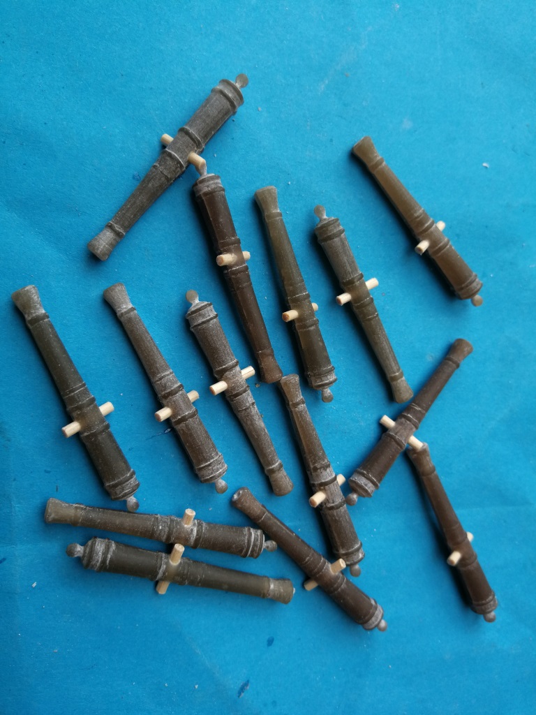 Armaty które będą na głównym pokładzie poskładane i teraz trochę poczekają na zamontowanie. Podobnie jak w Smoku zrobiłem je wcześniej, żeby łatwiej było ustalić wysokość otworów w burtach i dokonać ewent korekt.