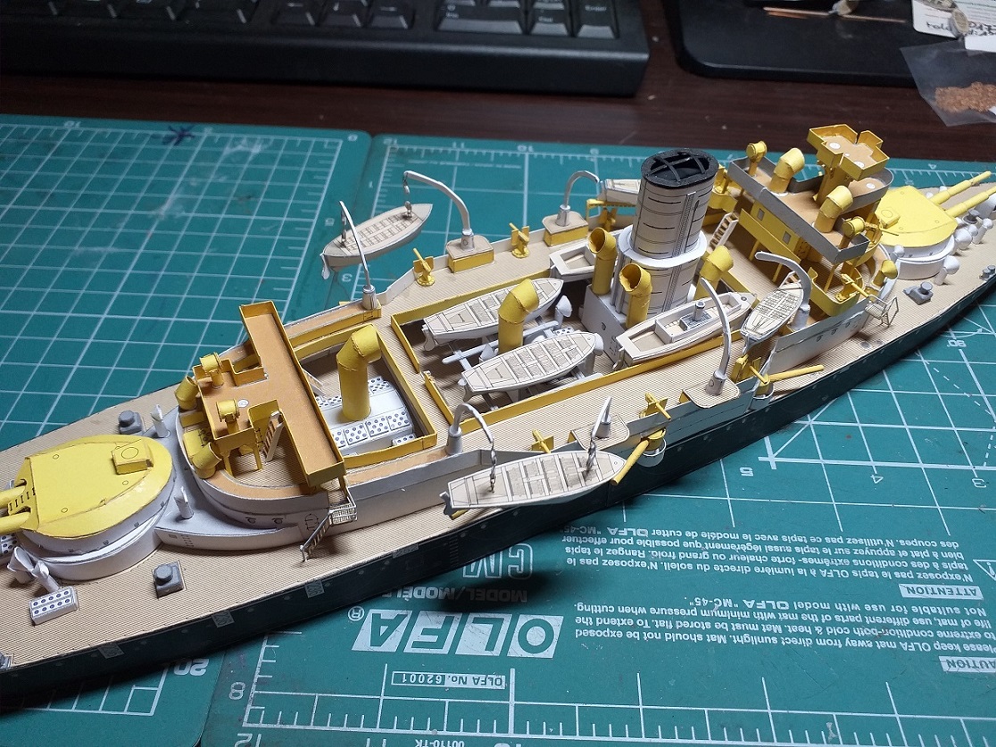 To jest już koniec budowy tego modelu. Od siebie dodałem reling wycinany laserowo, łańcuch też wycinany laserowo (czarny), olinowanie to nić elastyczna 0,12. Zapraszam do galerii.