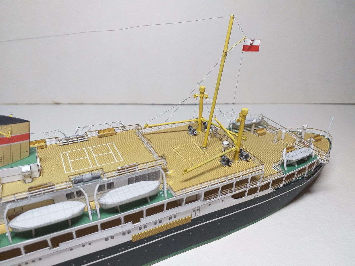 Witam, chciałbym pokazać model który był zaczęty kiedyś a niedawno skończony. Jest to model polskiego statku pasażerskiego M/S Batory z wydawnictwa JSC 14, skala 1:400, autorem opracowania jest Jan Schmidt, znany też pewnie z licznych planów modelarskich. Do modelu dodałem reling wycinany laserowo też z JSC, moje dzieło to bloczki przy bomach, olinowanie nie wszędzie mi wyszło ale już tak zostawiam, łańcuch kotwiczny będzie jak dokupię gotowy, zapraszam do galerii.