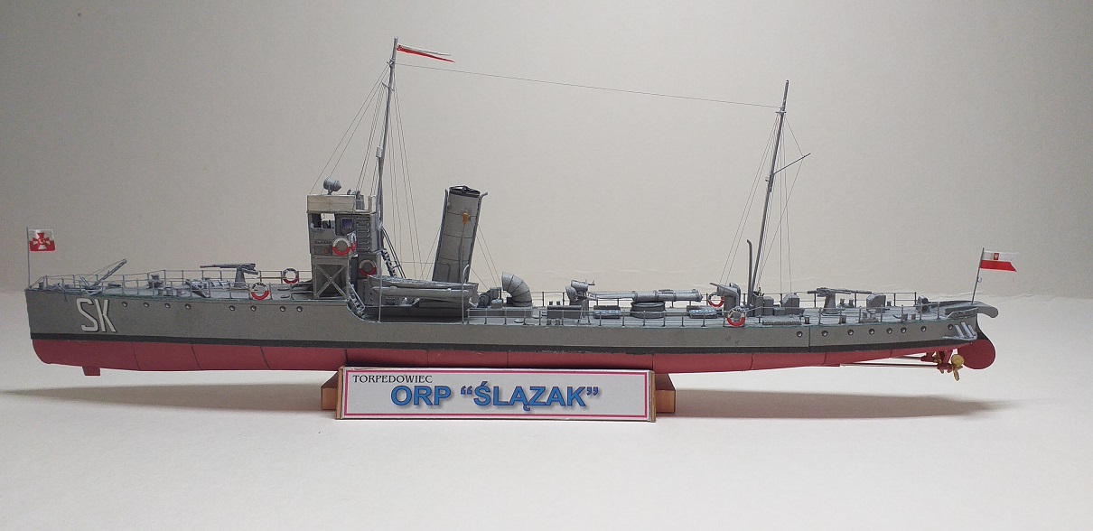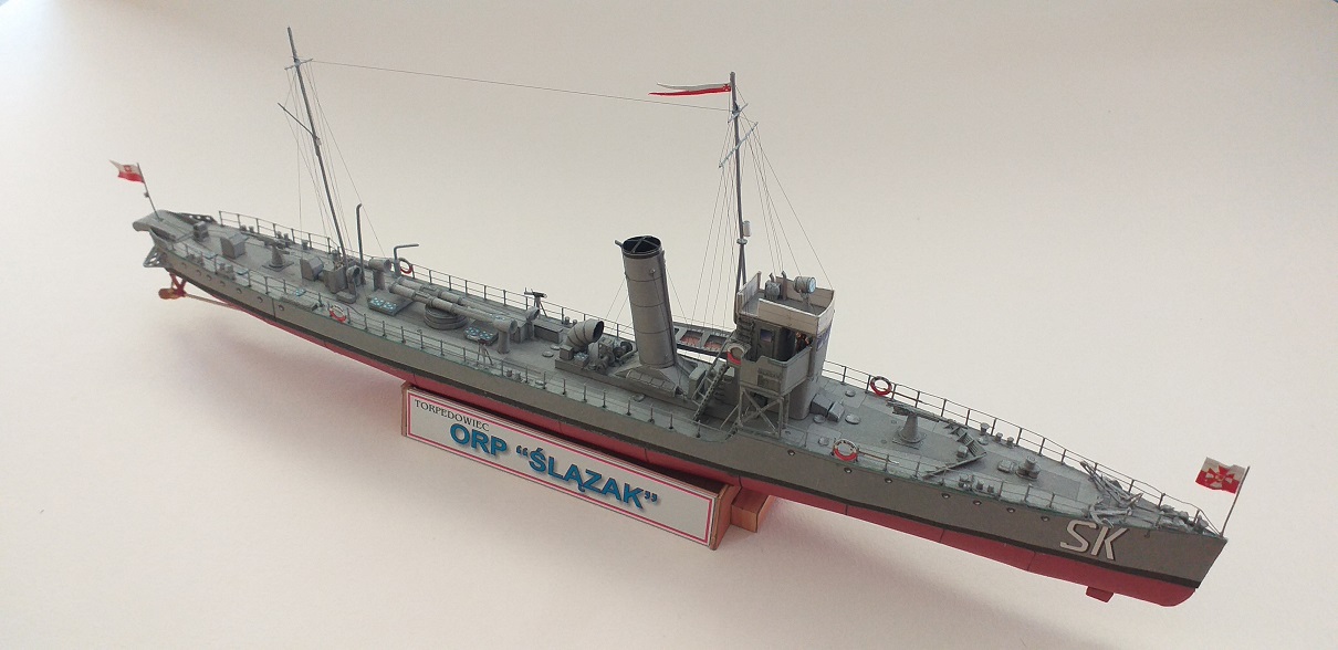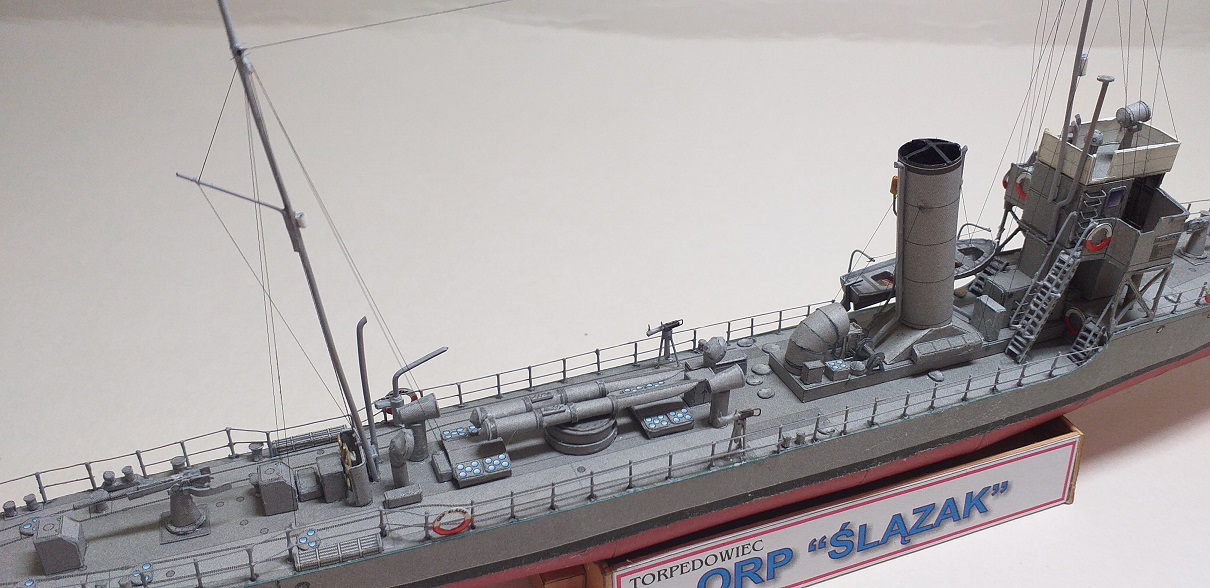 Kolejnym modelem budowanym bez żadnej relacji jest jak w tytule, torpedowiec ORP Ślązak, autorem opracowania jest Grzegorz Nowak. Model fajny, mały i przyjemny w sklejaniu. Zapraszam do skromnej galerii.