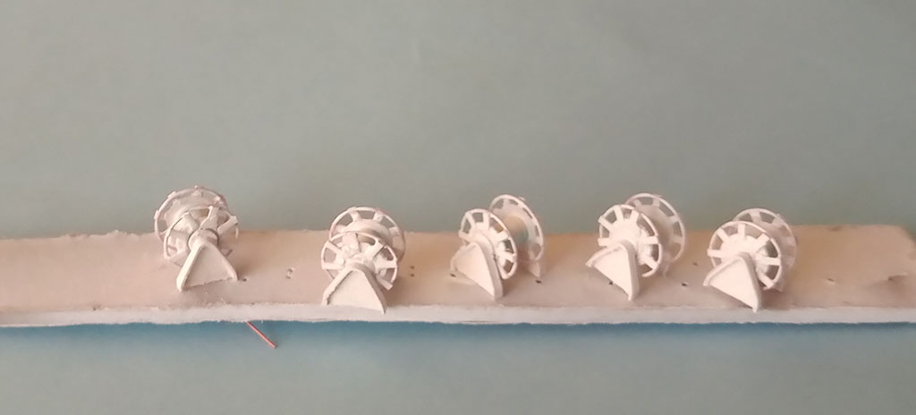 Dalszy ciąg zabawy w lepienie . Udało się ulepić kominy ( jeszcze trochę na nich brakuje) , bębny (nawinąć liny) ,wentylacje