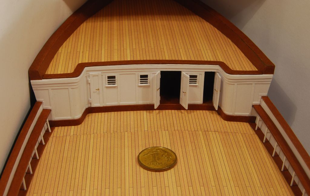 Druga nadbudówka w kierunku rufy. Deski boazerii są znacznie szersze od tych zaproponowanych w wycinance