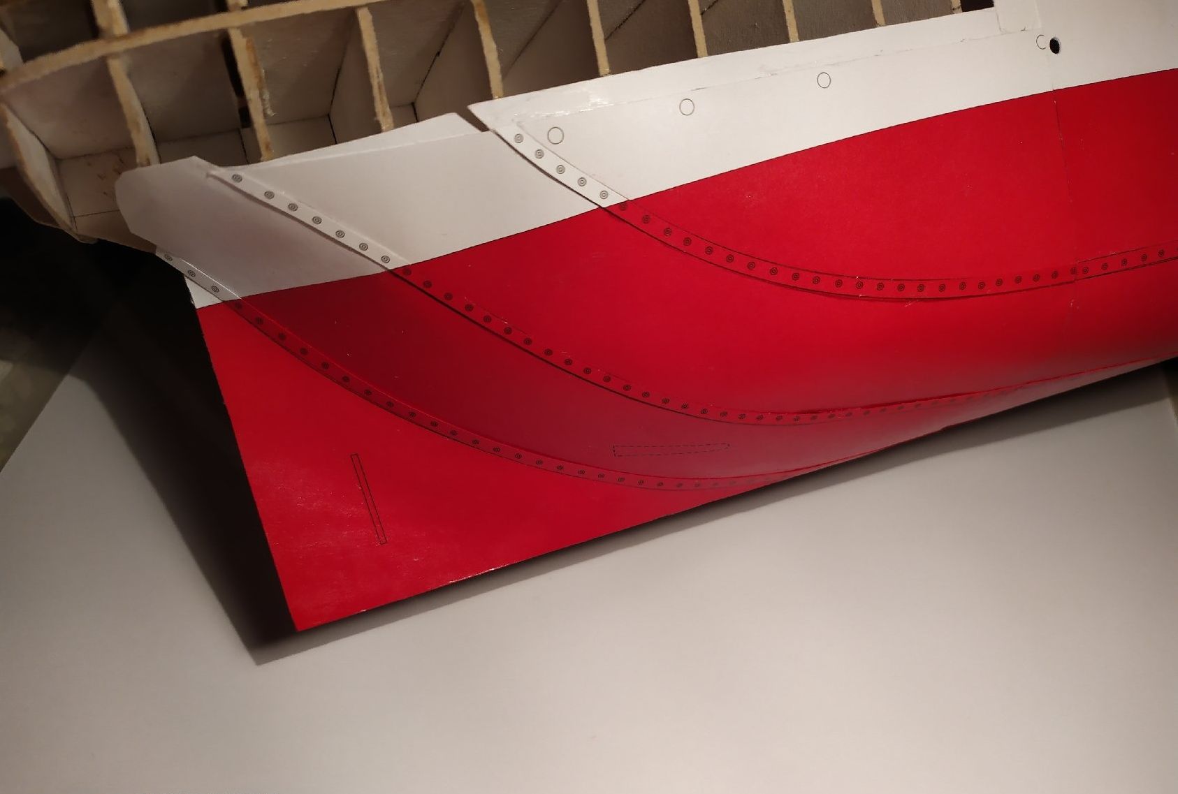 Po kilku potknięciach ze szkieletem (parę błędnych oznaczeń), złożyłem go i wykonałem podposzycie szczebelkowe (na dziobie pełne)