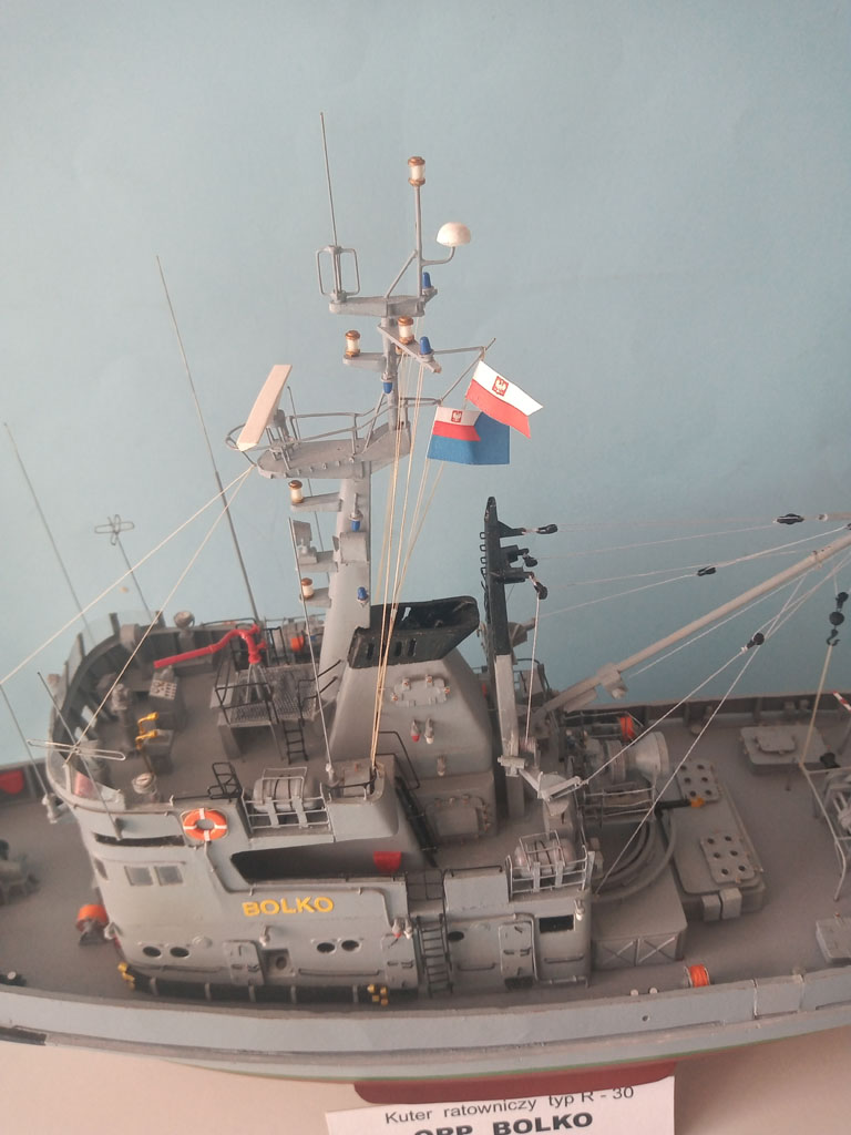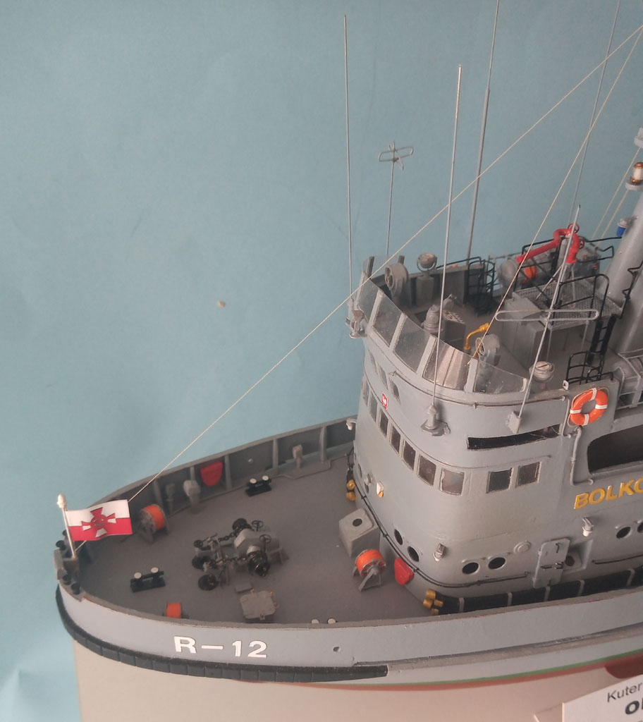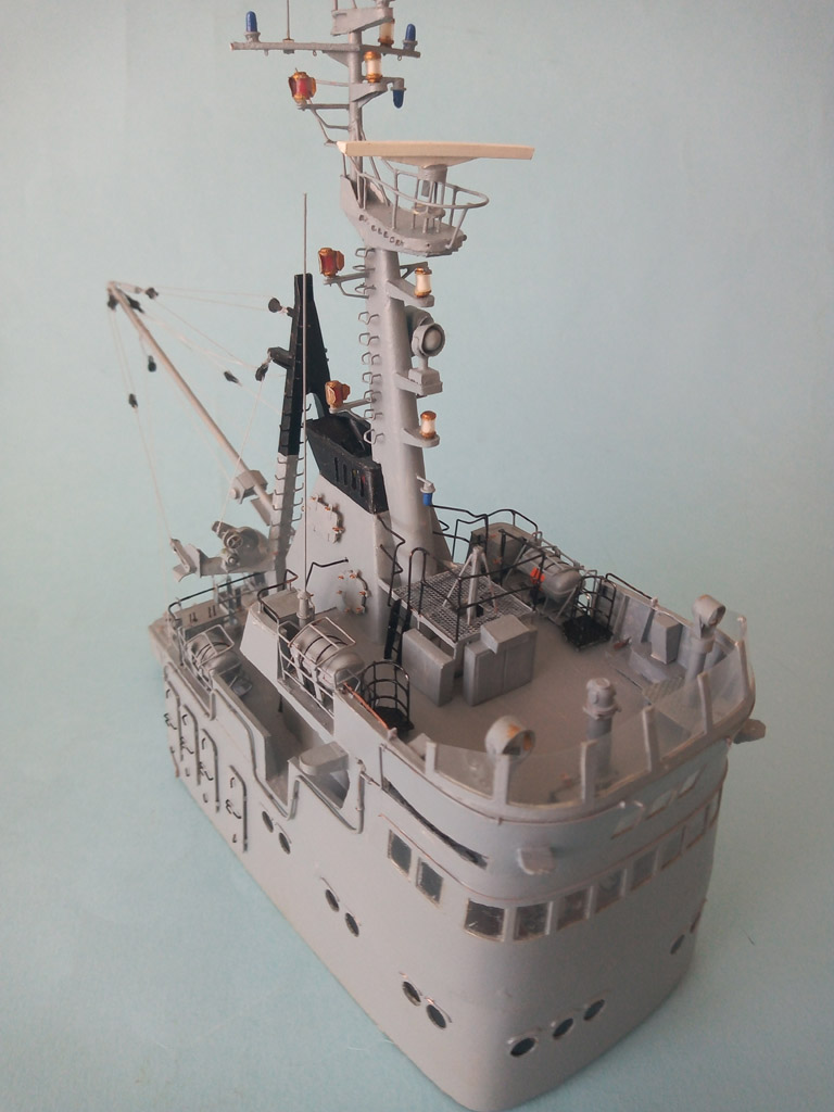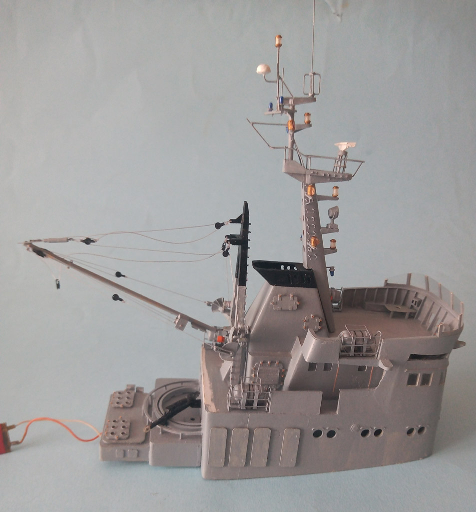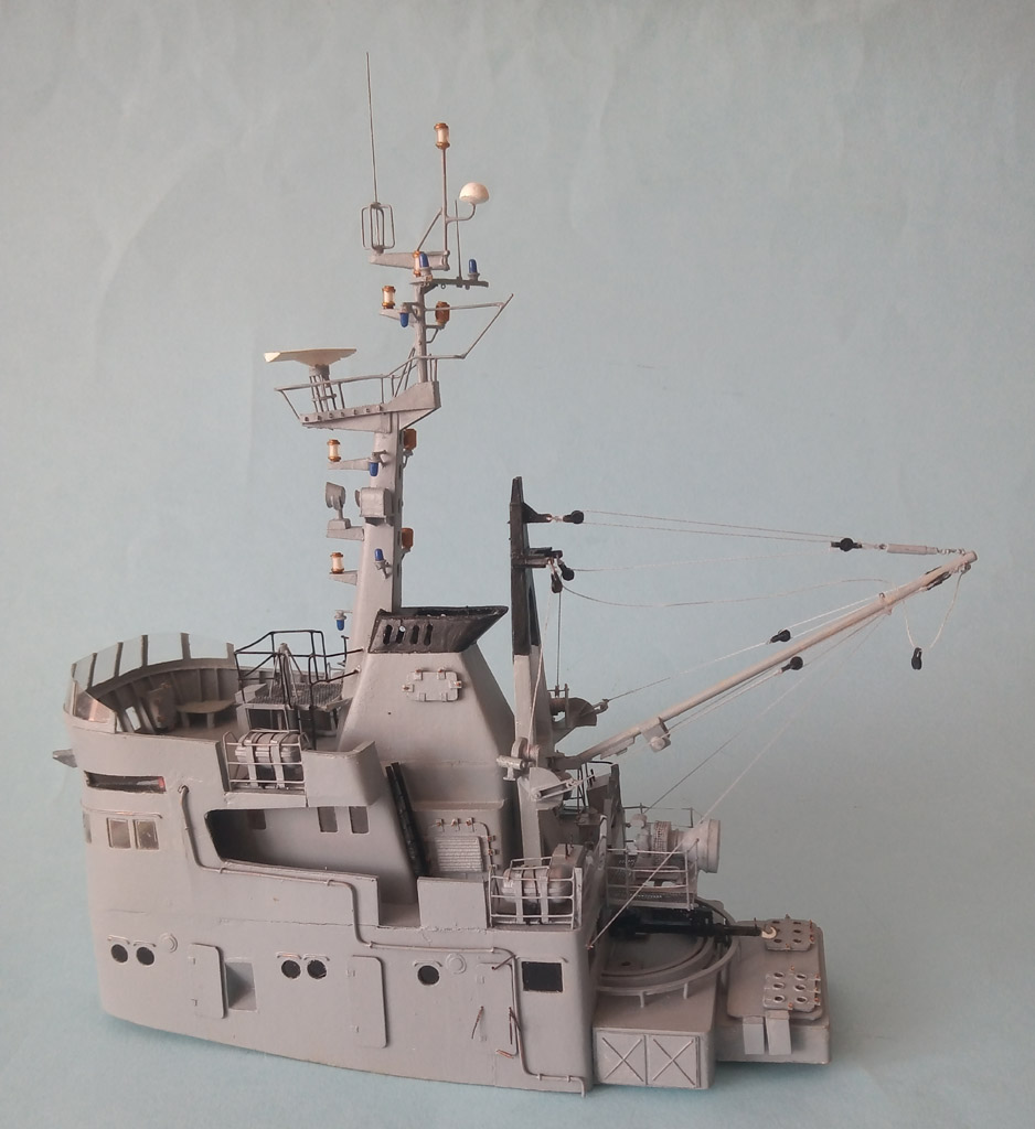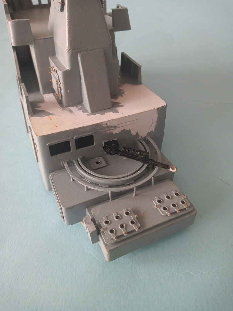 Nadbudówka zamocowana . Przybyło trochę drobnicy - anteny , działko wodne itp . Jeszcze trochę drobnicy i będzie finał