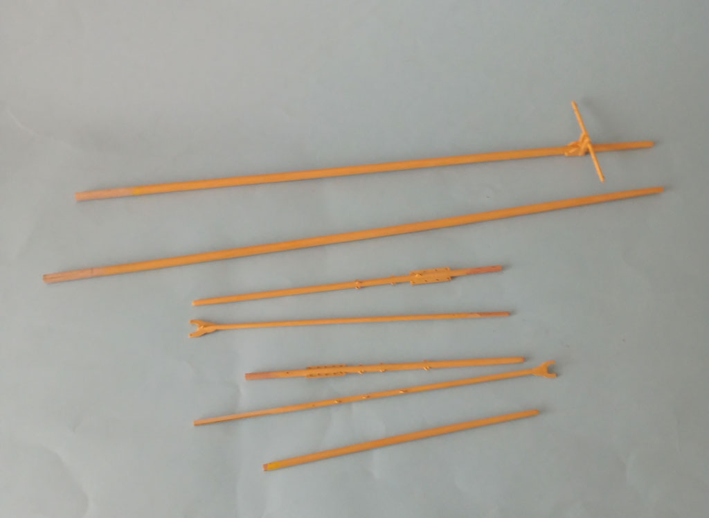 Kadłub pryśnięty podkładem to trzeba pomalować . Prysłem białym lakierem i wyszło bez problemu . Przy pryśnięciu czerwonym -problem . W miarę schnięcia pokazały się "pajączki" i trzeba było poprawiać . Wyszło trochę lepiej ale nie poprawiam . Kiedy farba schła udało się nastrugać trochę patyczków . Do następnego spotkania