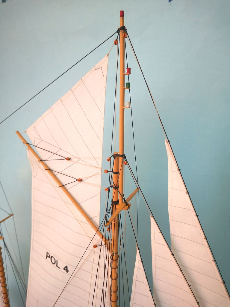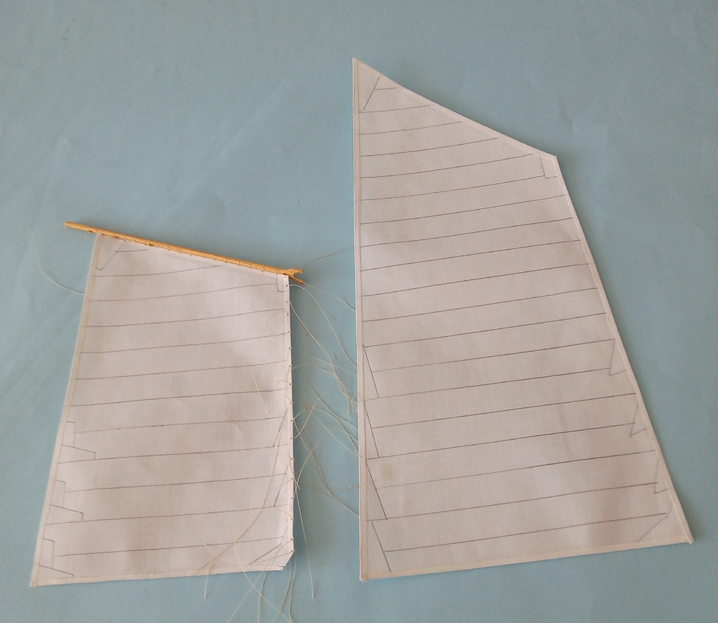 Maszty udało się postawić i zrobić część olinowania stałego . Zrobiłem dwa żagielki które musze uzbroić w bloczki przed zamocowaniem do masztów Do następnego spotkania