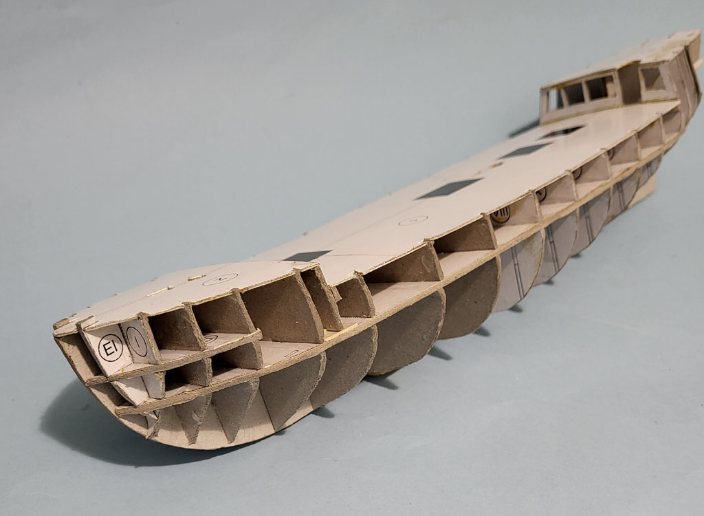 Wręgi ponaklejałem na tekture i powycinałem .Poskładałem kadłub i jak do tej pory to wszystko pasuje więc posklejałem niech schnie