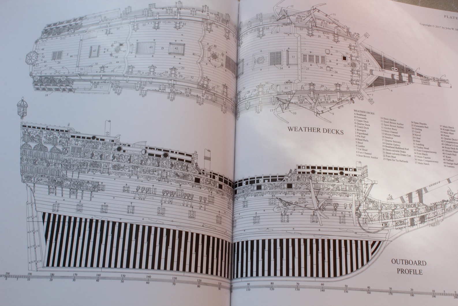 Książka rewelacyjnie opracowana. Jest w standardzie cyklu Anatomy of the Ship. Autor skupia się na różnicy wynikających z rycin John'a Payne'a i Willema'a van de Velde'a. Wrzucę kilkanaście fotek ze środka ksiązki
