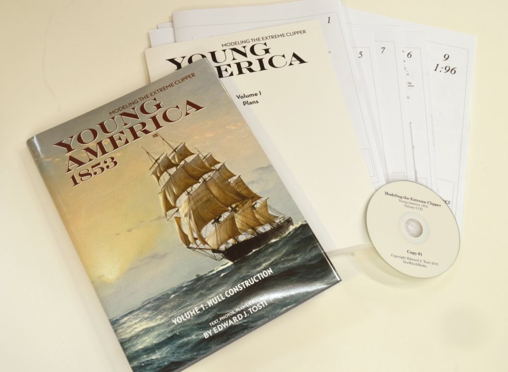 Edward Tosti, autor dwutomowego opracowania na temat fregaty HMS Naiad właśnie wydał nową publikację. Dotyczy ona amerykańskiego klipra Young America zwodowanego w 1853, który należał do jednych z ostatnich drewnianych kliprów. Książka zawiera opis budowy kadłuba metodą na wręgach (w stylu admiralicji) w skali 1:72, a dodatkowo jako bonus jest opisana metoda budowy na pełnych wręgach/grodziach w skali 1:92. Książka zawiera 267 stron, setki zdjęć i tak jak w przypadku Naiad, szczegółowo są opisane narzędzia i techniki wykonania. Do książki dodano osiem arkuszy planów a na płycie CD są rozrysowane poszczególne wręgi, elementy konstrukcyjne stępki, itp. Drugi tom ma obejmować pokład główny wraz z masztami i takielunkiem.