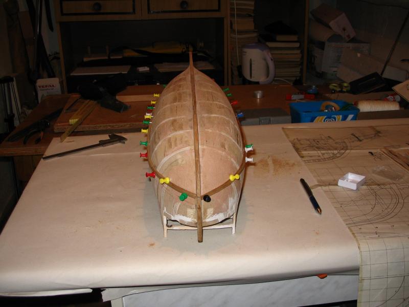 Z tym MDF to było tak że zostały mi kawałki po panelach sufitowych.Postanowiłem je wykorzystać do wypełnienia pomiędzy wręgi.Pociąłem je na beleczki i powklejałem Pattexem z lekkim naddatkiem na szlifowanie.Szlifowały się b. dobrze we wszyskich kierunkach.Oczywiście kadłub jest nieco cięższy niż z jakimś drewnem ale to nie ma większego znaczenia.Prawdziwe kadłuby też miały znaczny balast w postaci kamieni.Listwy do tego przyklejały się super i nie było problemu ze szpilkowaniem.:)