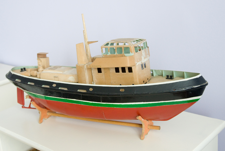 Aktualnie posiadam, tak jak pisałem wcześniej, niedokończony model holownika. Jest gotowy kadłub, nadbudówka i parę elementów. Czeka już ponad 30 lat na dokończenie. Kleiłem razem z wnukiem parę modeli plastikowych, które on zatrzymał sobie. U mnie stoi tylko lekko poturbowany przez wnuki żaglowiec Alexander Humboldt.