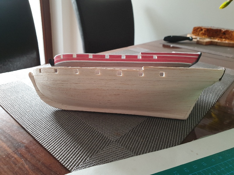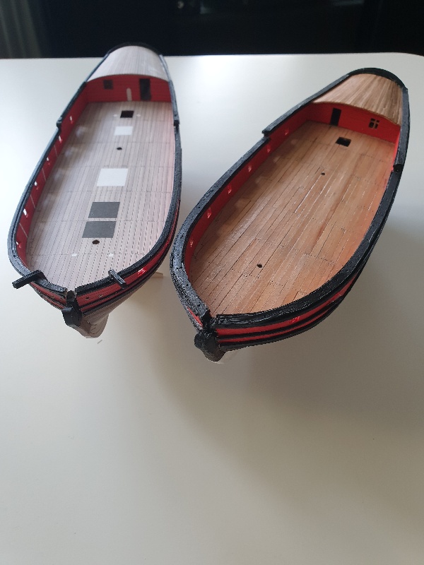 a tu świeżo po malowaniu, na chwilę obecną mam już kilka elementów wyposażenia pokładu zrobione na wersji kartonowej. jak skończę działa to przesiadam się na wersję fornirową:)