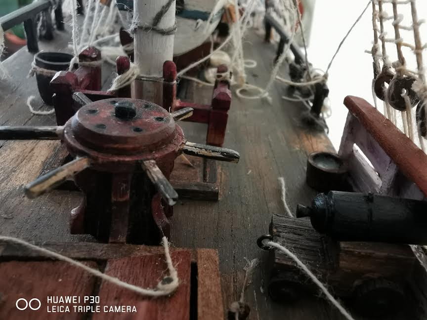 ” zabrałem głos, bo od kilku lat buduje Bounty, nie mogę się przyczepić do niczego, bo jak sam zaznaczyłeś, że taki ten model ma być. Ja to rozumiem, bo w poprzednim swoim modelu zrobiłem olinowanie ruchome w kolorze białym a już nie wspomnę, że na galeonie zamontowałem koło sterowe, a w tamtej epoce stosowało się rumpel, ale to był mój model i chciałem żeby taki był i tyle. Podoba mi się w Twoim modelu wiadro z wodą, taki detal, ale zwraca uwagę. Popieram Jarka cytuje „Masz talent w rękach pisząc o swojej profesji.”. Pokaż nam w jakimś innym wątku swoje prace plastyczne i renowacyjne a My Ci doradzimy, na jaki model będzie Cię stać.