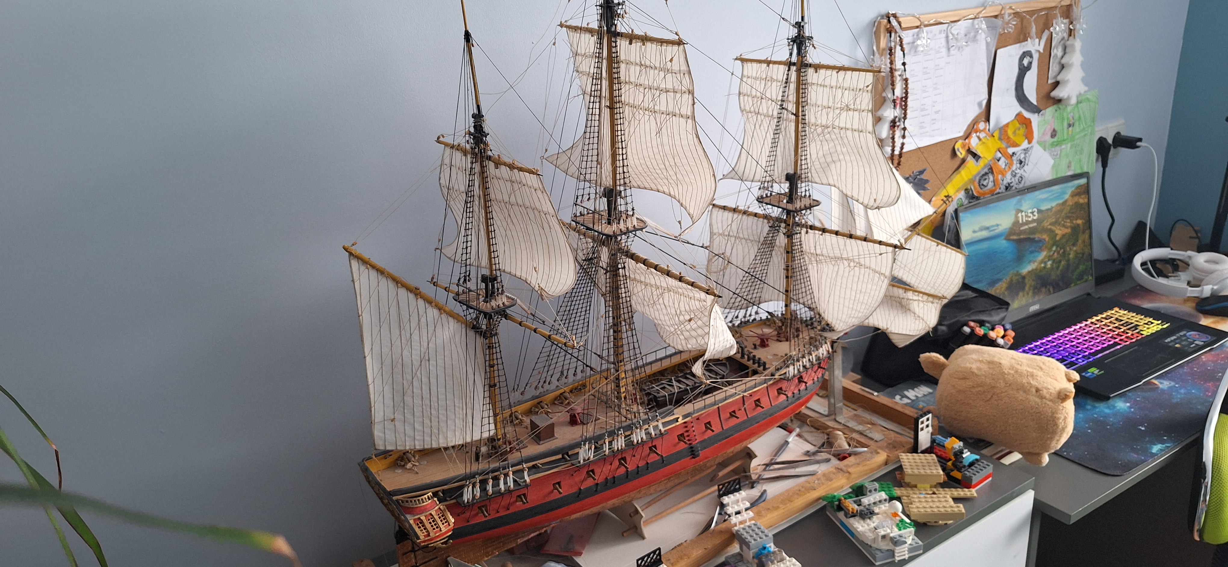 Pracowałem przy budowie hiszpańskiej fregaty Santa Leocadia. Projekt nie upadł a powiem nawet ze jest prawie ukończony. W tle powstają kolejne modele ale o tym może innym razem.