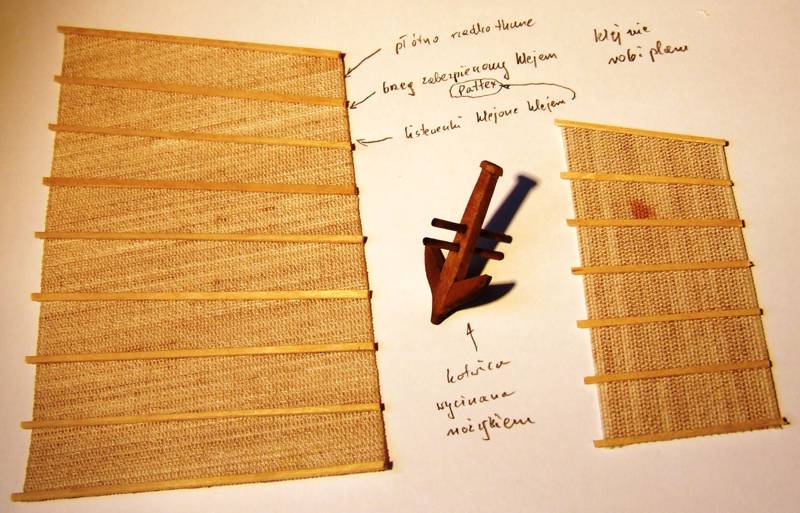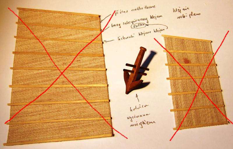 Listwy (mogą być z forniru) powinny być wzdłuż osnowy żagla,