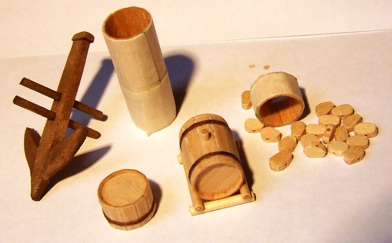 Beczka i wiaderko jest z pasków forniru naklejonych na plastikowy długopis