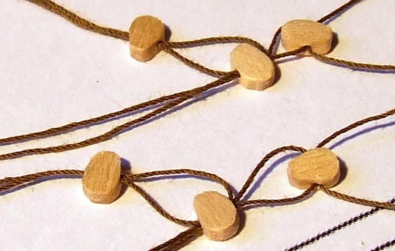 na poszczególnych wręgach przy poszywaniu kadłuba (np. modelu z pewnego wydawnictwa).
