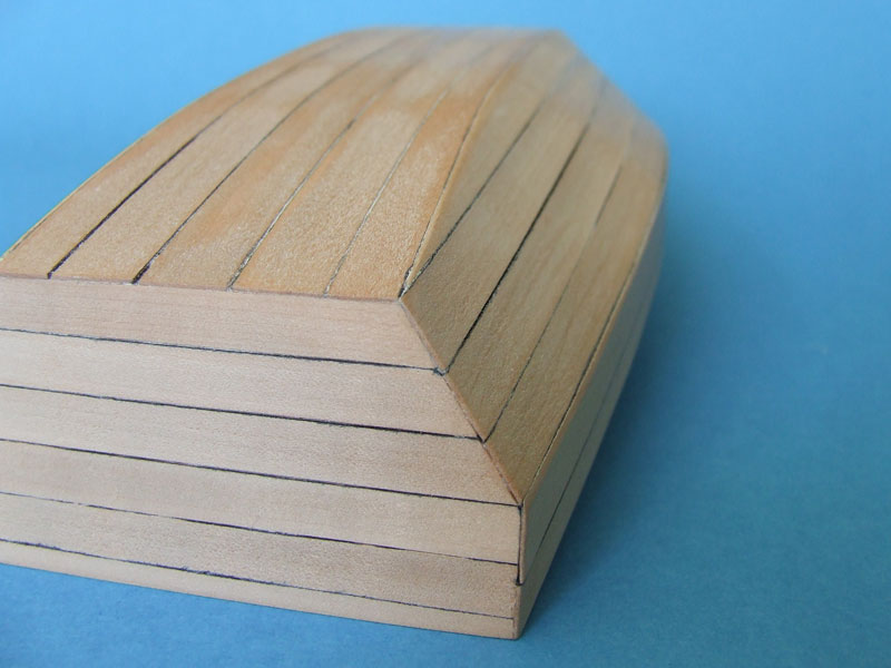 Zostaw tak jak jest i jedź do końca. Nie ma sensu zrywać dobrze zrobionego pokładu. Kup olej v33 i zaolejuj, będzie lepiej. Albo przejedź bejcą burty, żeby były ciemniejsze od pokładu. Te proporcje symetrii to też histeryzujesz niepotrzebnie. To model treningowy, a ty robisz go świetnie. Skończ go i jak Cię będzie meczyć, to tego dasz komuś a zrobisz nowy, według swoich spostrzeżeń.