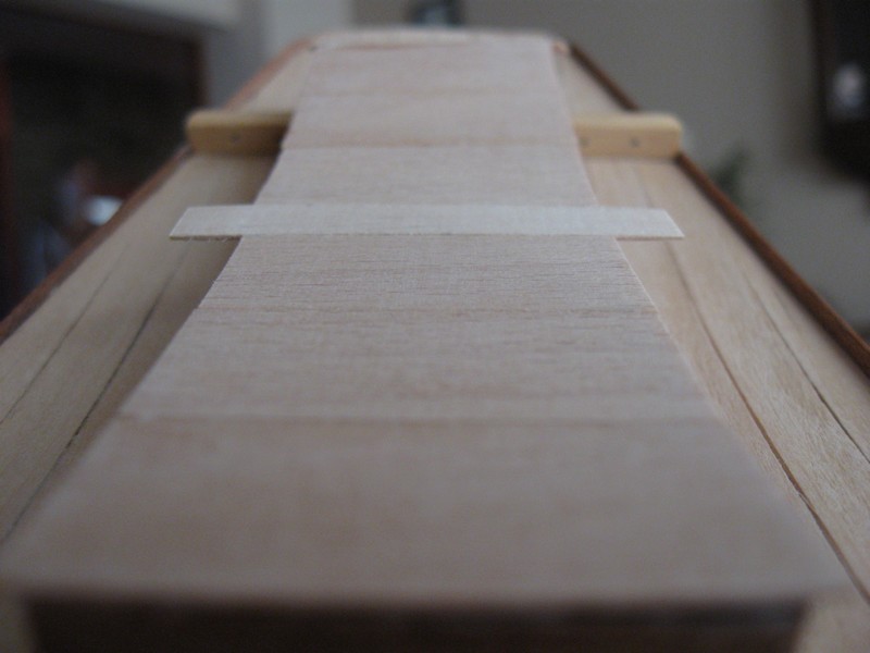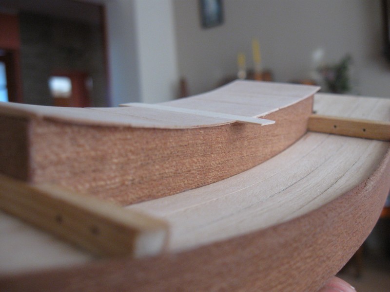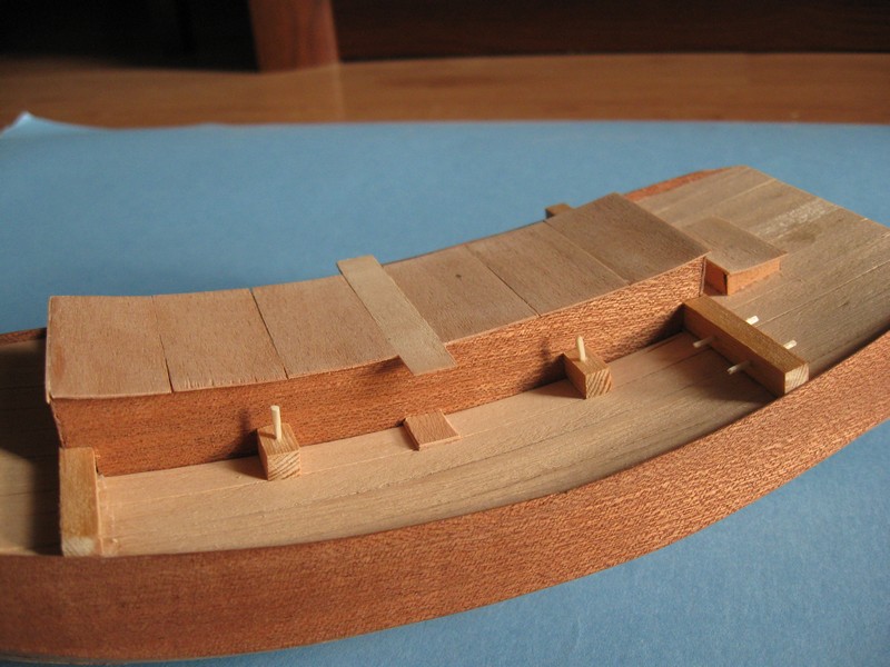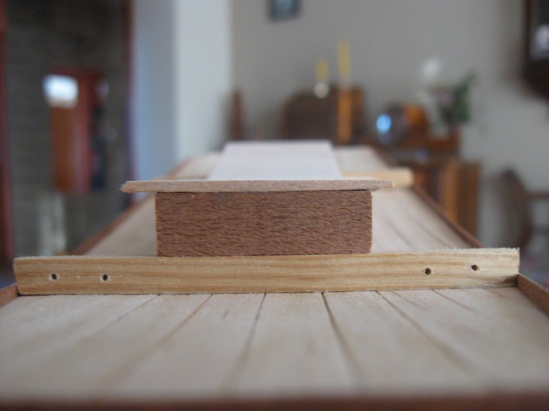 O to kolejne kroki, nie miałem forniru 1 mm ale jeśli trzeba to będę mógł dokleić ''plaster'' na nadbudówkę.:P listewki 5x5 mm. Tylko niebardzo wiem jak zrobić 1 mm kołki. Najcieńsze co mam to szaszłyk:P.