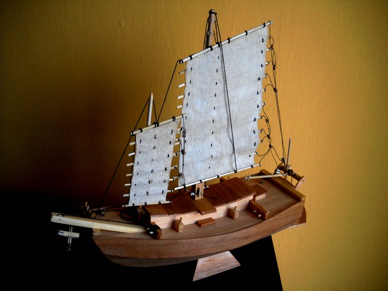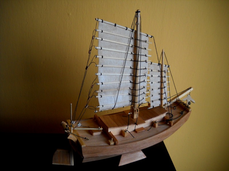 Witam, dalszy etap robót. Dżonka zalakierowana bezbarwnym jednokrotnie, ponieważ do oleju nie mam dostępu póki co.
