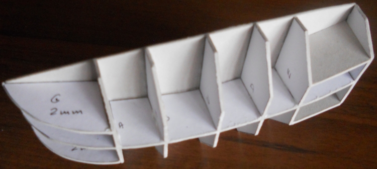 Do zrobienia kadłuba użyję kartonu 1 i 2 mm, który potem zostanie pokryty fornirem.