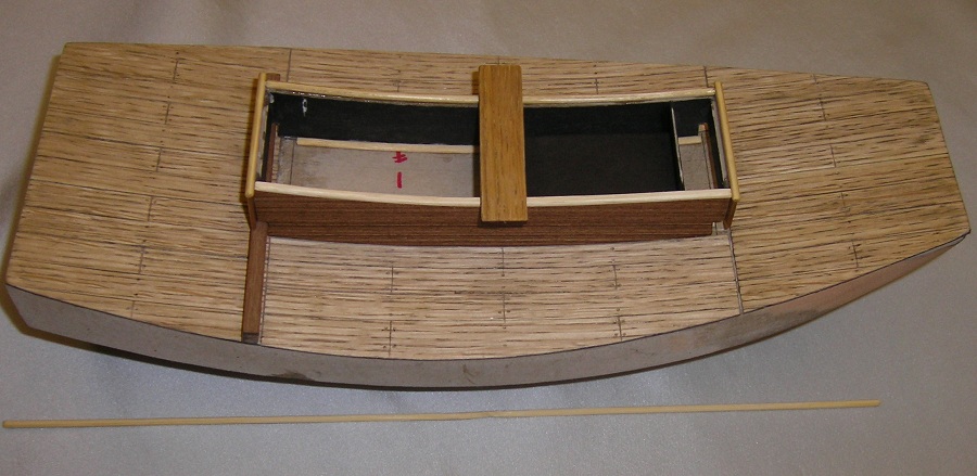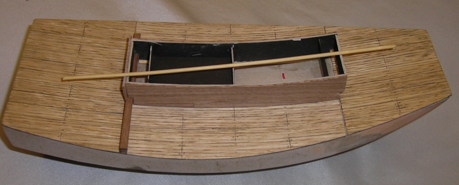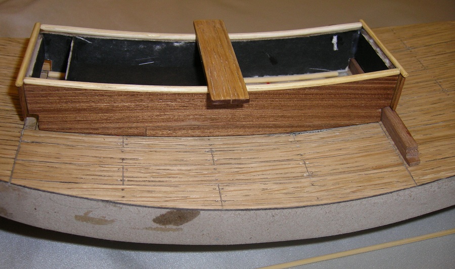 Ciąg dalszy prac Do przyklejenia segmentów , dla odmiany, zastosowałem butapren Pokład przeszlifowany gruboziarnistym papierem Potem prace z rysunków i szlifowania papierem 800 ; Jeszcze raz to samo Następnie cyklinowanie szkłem i pokrycie jedną warstwą Caponu. Pozdrawiam.