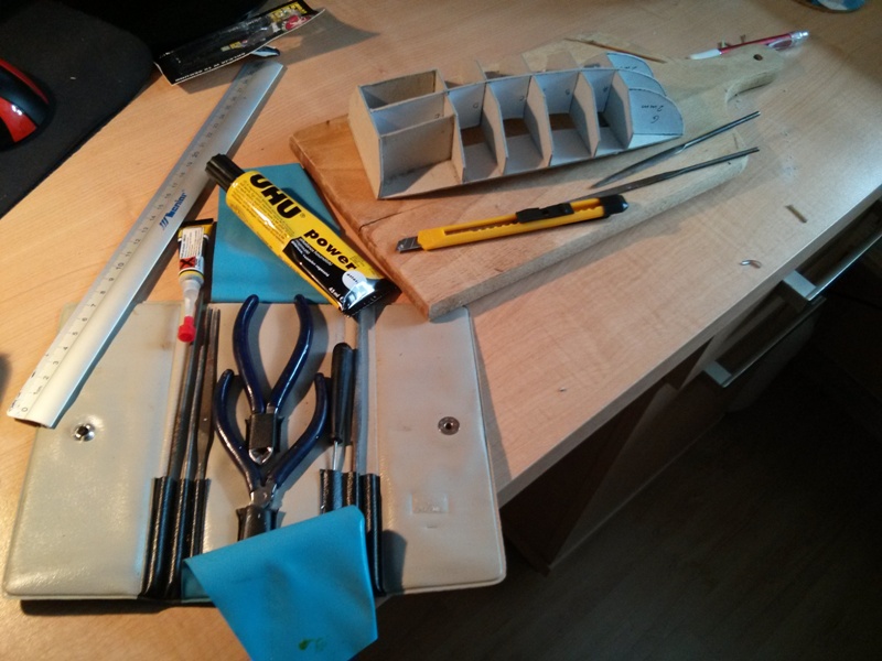 Na razie idzie mi chyba nieźle. Niestety dzisiejsze poszukiwania forniru w moim mieście zakończyły się fiaskiem i z informacji pana stolarza w Zielonej Górze tego nie dostanę... Pozostaje więc alledrogo co niestety wydłuży trochę moją pracę, ale czasu nie zmarnuję, poczytam inne relacje i przemyślę wygląd mojej dżonki. Wstępnie: fornir olcha, pokład normalny, kadłub bejcowany na ciemny brąz.