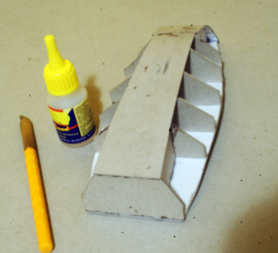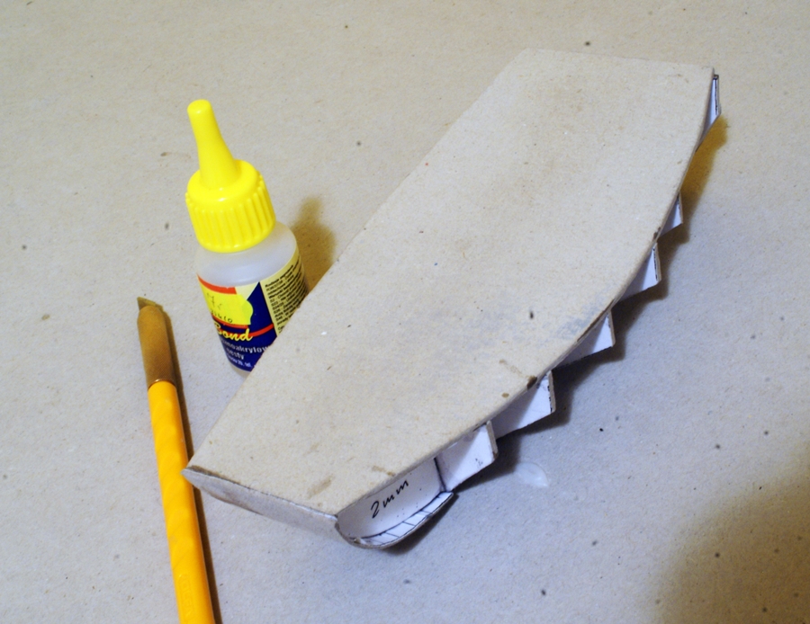 Tak na szybko zaznaczyłem miejsca na które warto zwrócić uwagę. Im lepiej spasujesz szkielet i pierwsze, kartonowe poszycie, tym łatwiej ci będzie później poszywać fornirem. Przy kartonowym poszyciu zwróć uwagę na "krowie żeberka", które mogą wyjść na właściwym poszyciu.